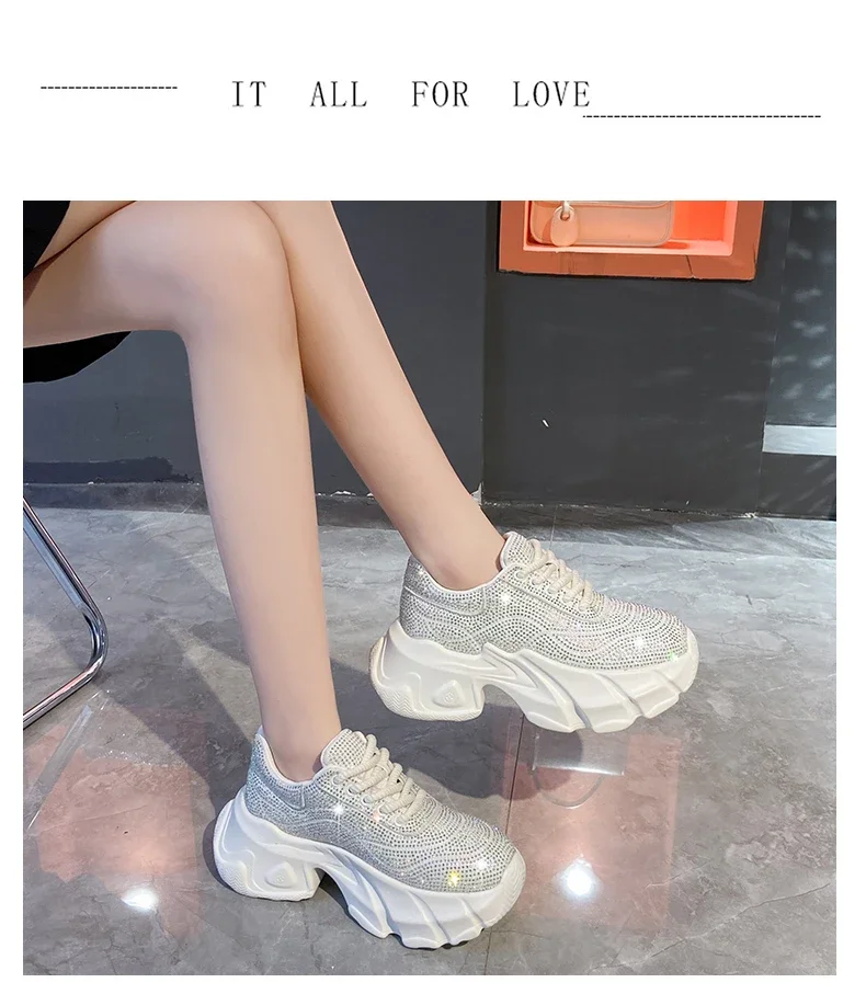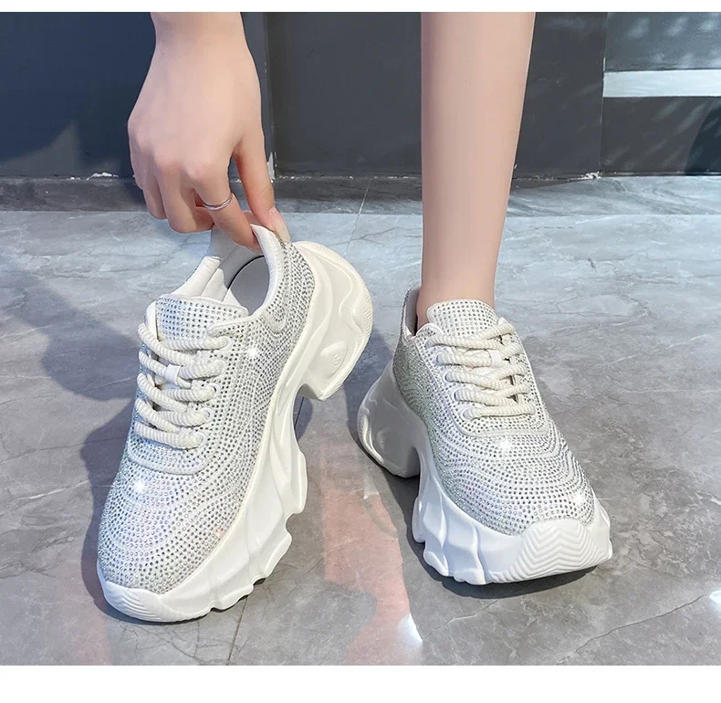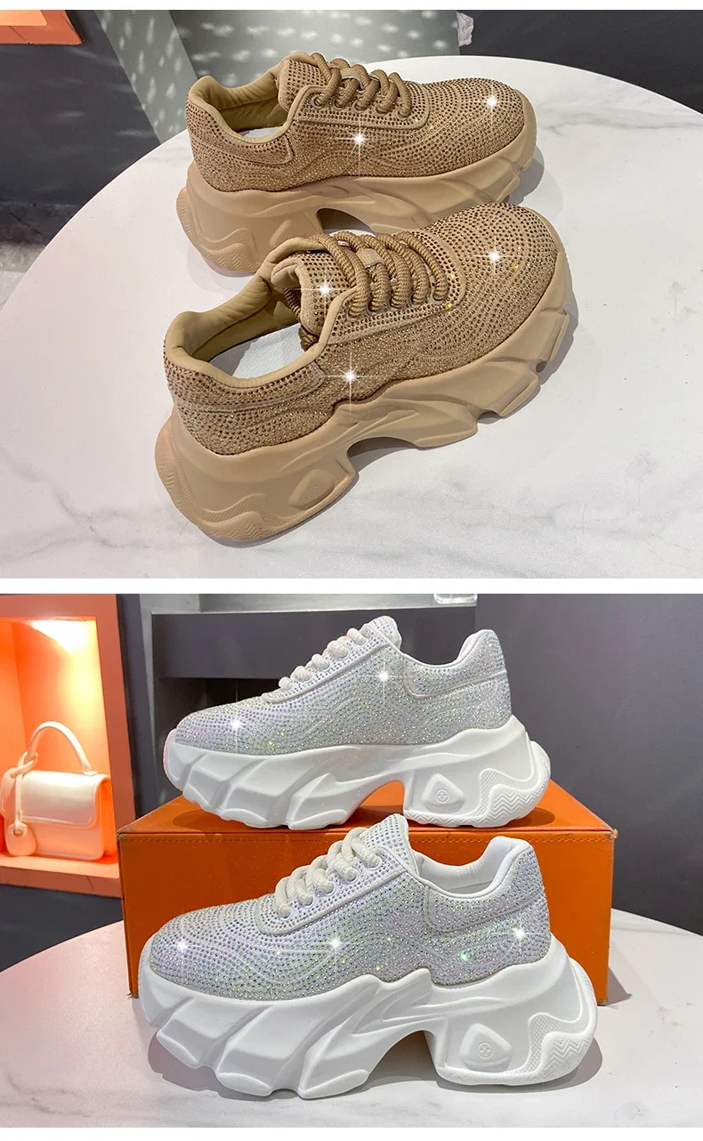 Shoes Women 2024 New Shiny Rhinestone Women's Sneakers Shoes Autumn Designer Fashion Thick Sole Sports Shoes Zapatos De Mujer
