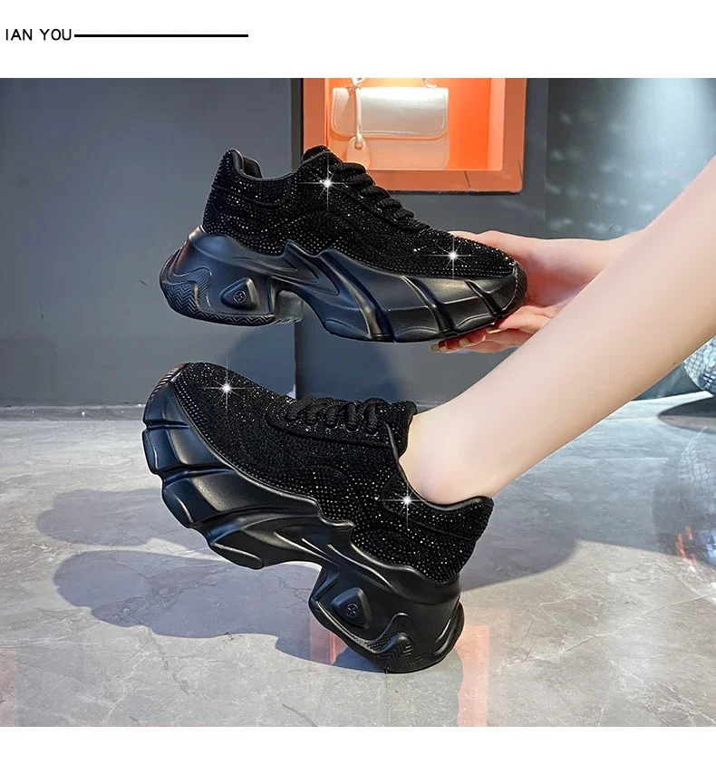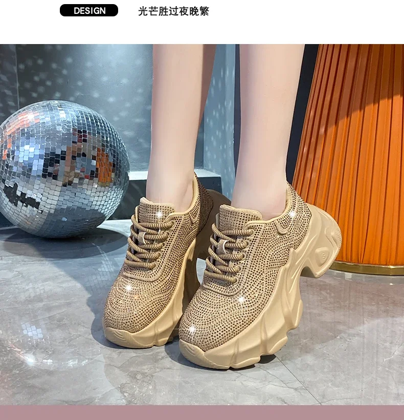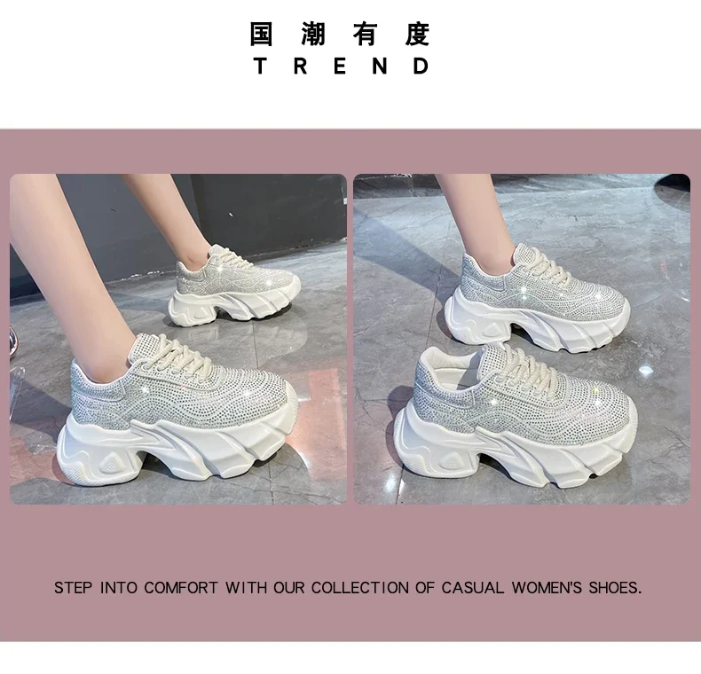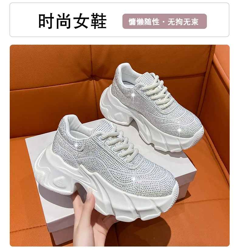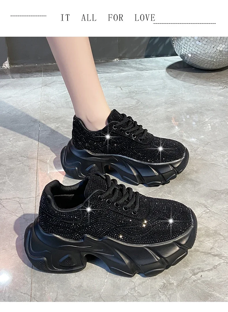 Shoes Women 2024 New Shiny Rhinestone Women’s Sneakers Shoes Autumn Designer Fashion Thick Sole Sports Shoes Zapatos De Mujer
