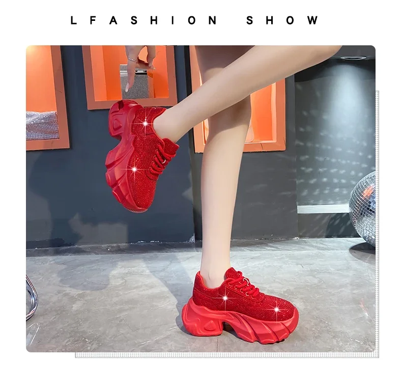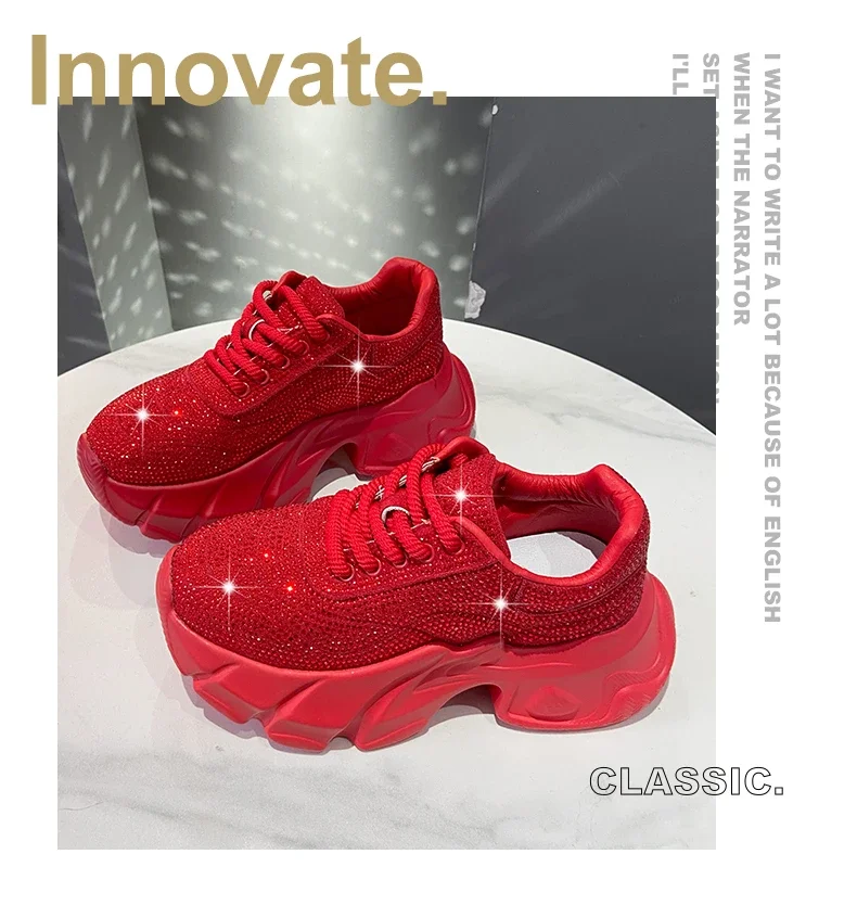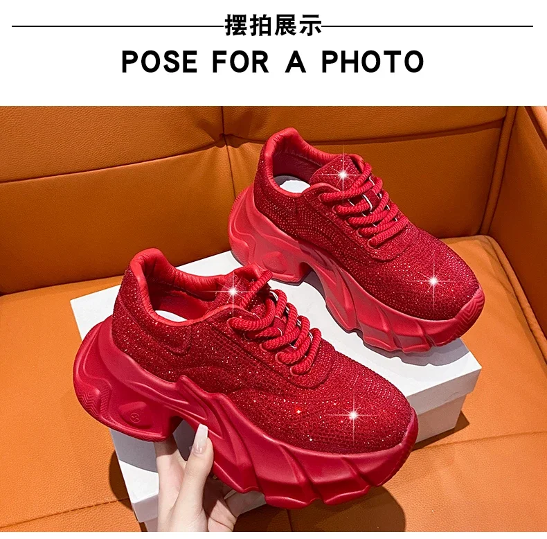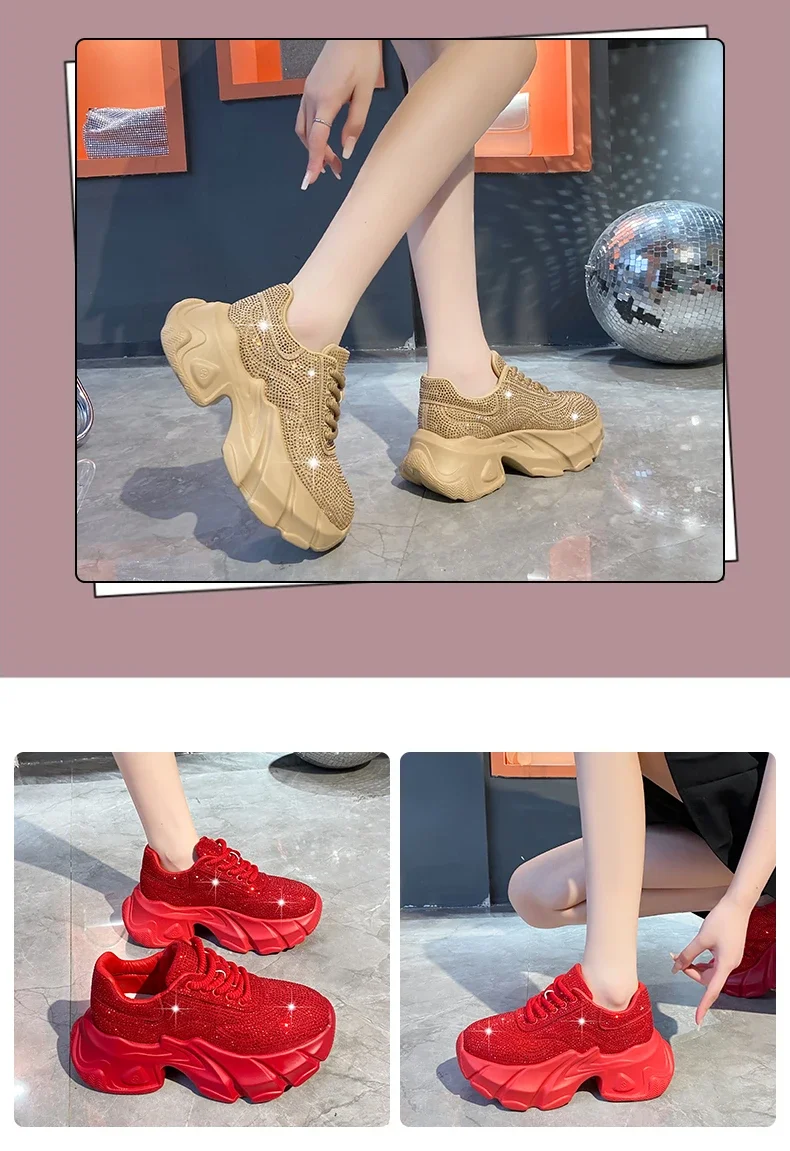 Shoes Women 2024 New Shiny Rhinestone Women’s Sneakers Shoes Autumn Designer Fashion Thick Sole Sports Shoes Zapatos De Mujer