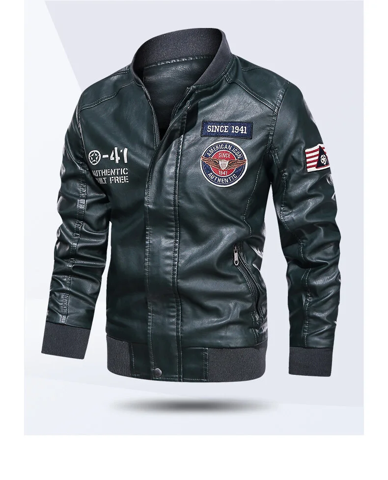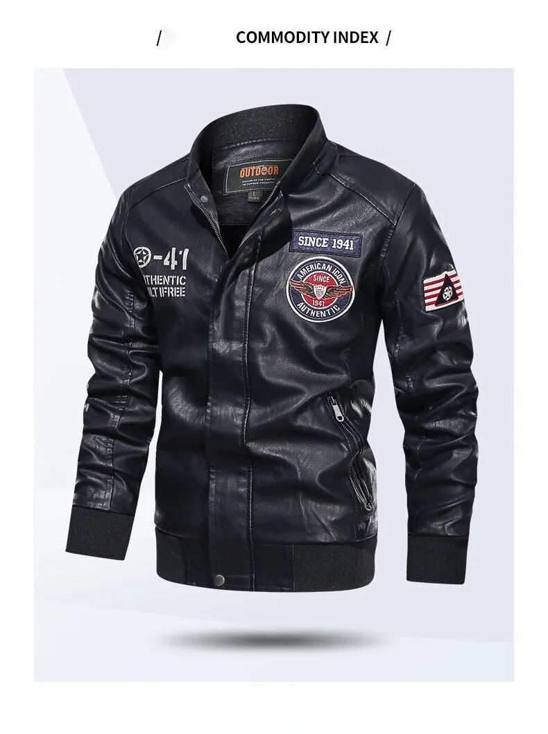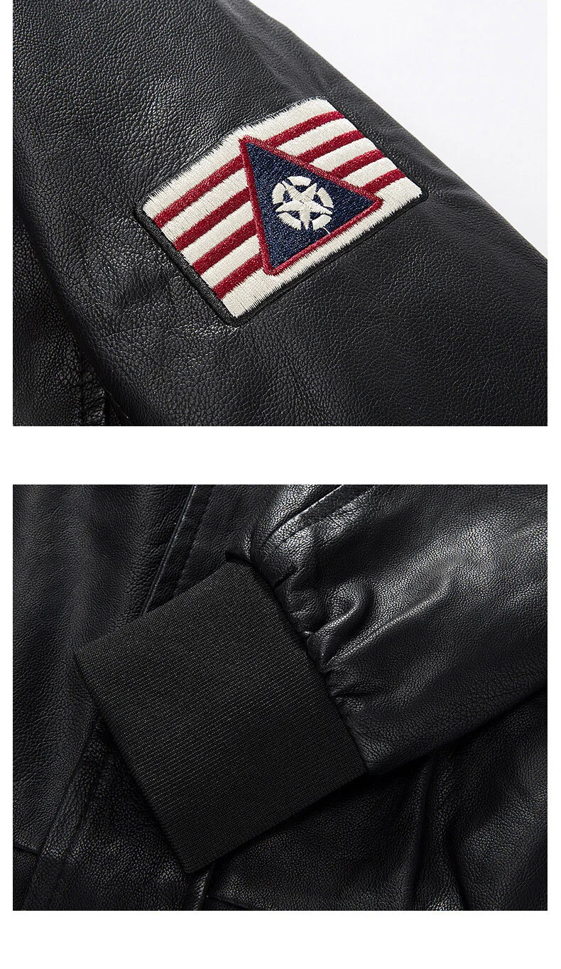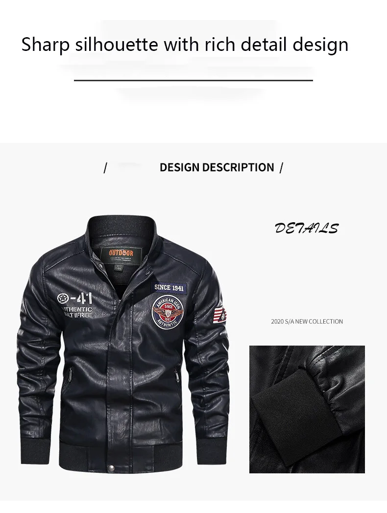 Spring and Autumn Men’s Motorcycle Suit Leather jacket Color blocking American baseball collar pilot casual PU leather jacket