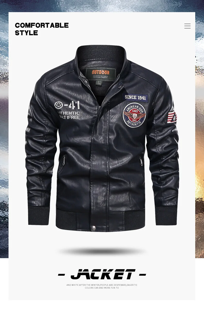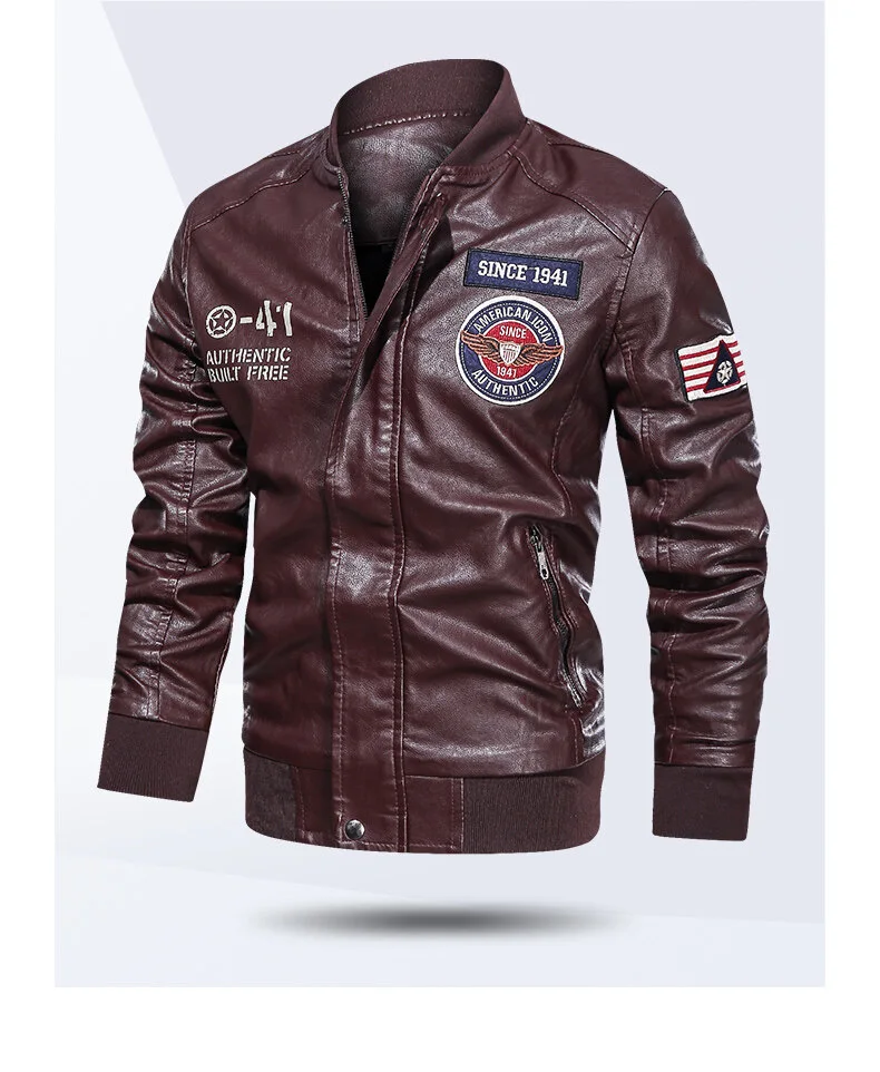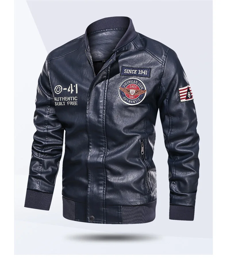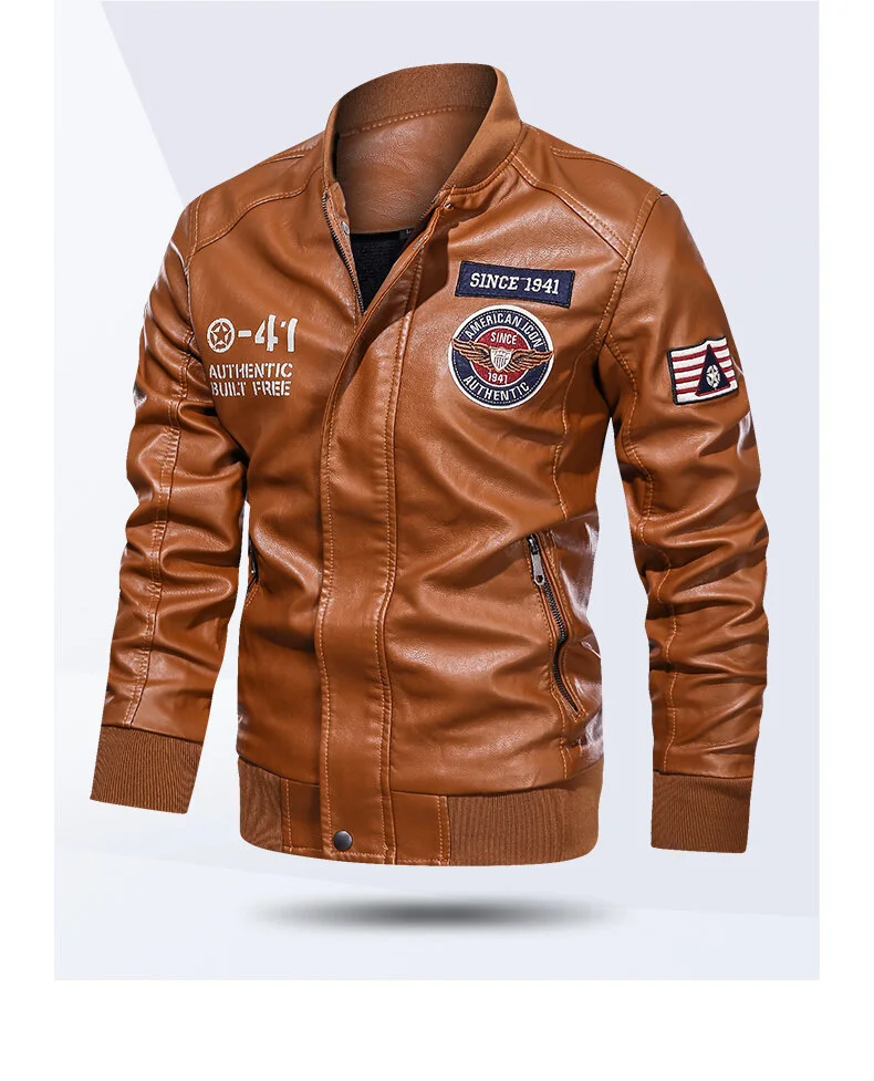 Spring and Autumn Men’s Motorcycle Suit Leather jacket Color blocking American baseball collar pilot casual PU leather jacket