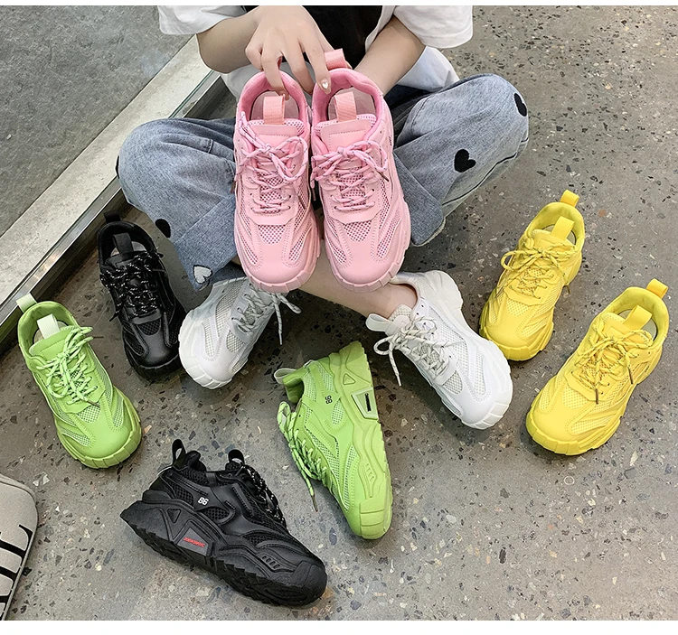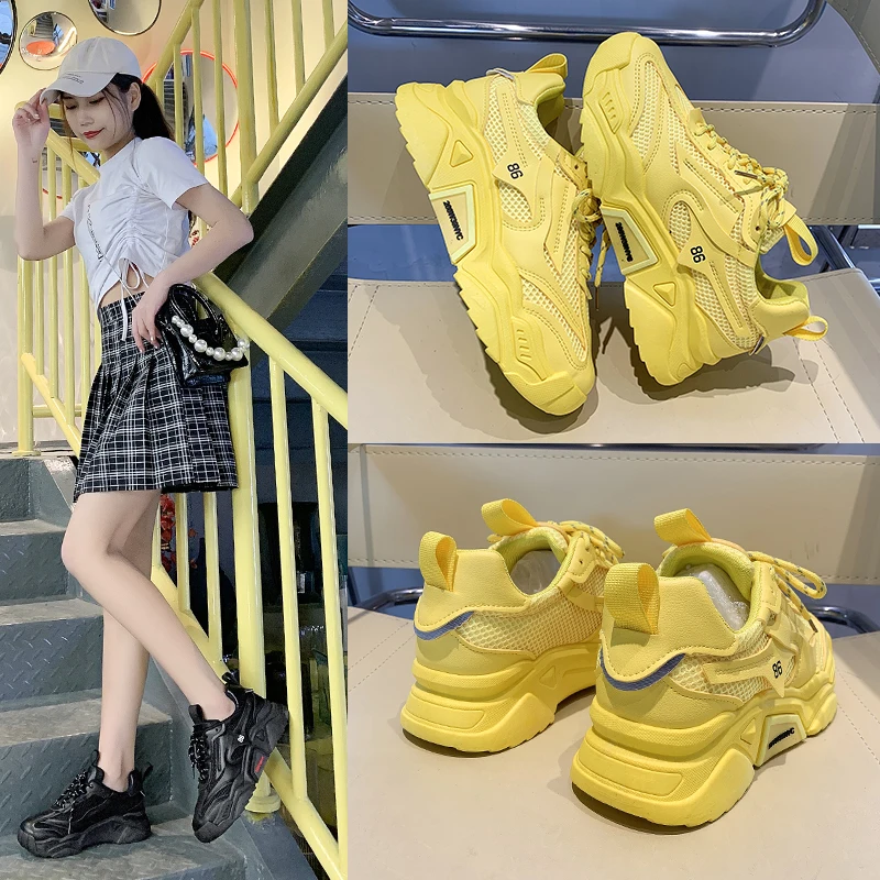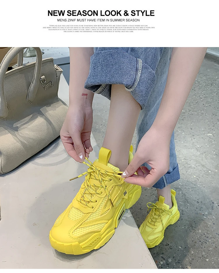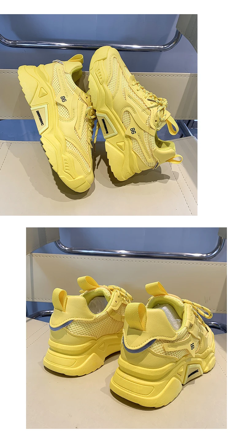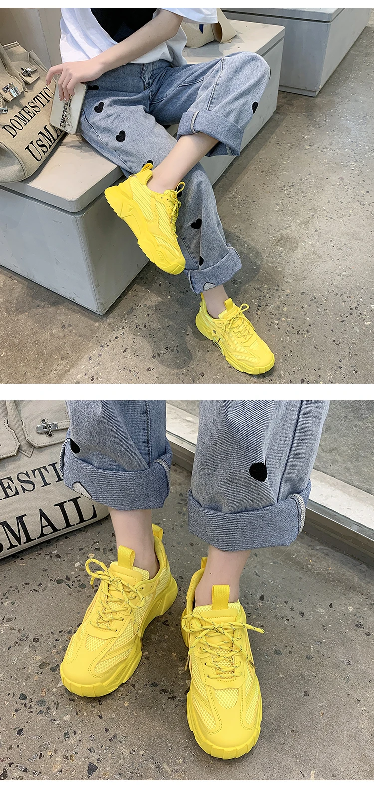Spring Autumn Platform Sneakers Women Casual Lace Up Thick Bottom Walking Shoes Woman Non Slip Yellow Sneakers zapatillas mujer