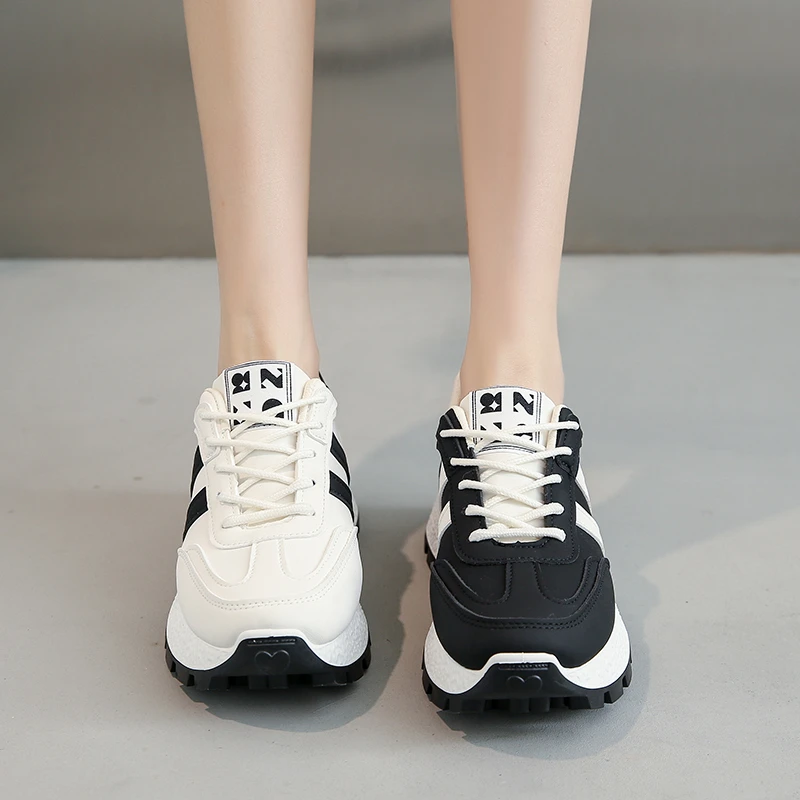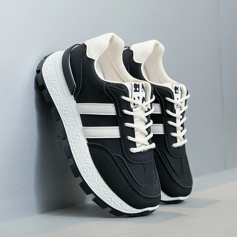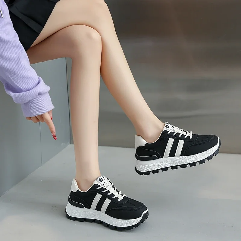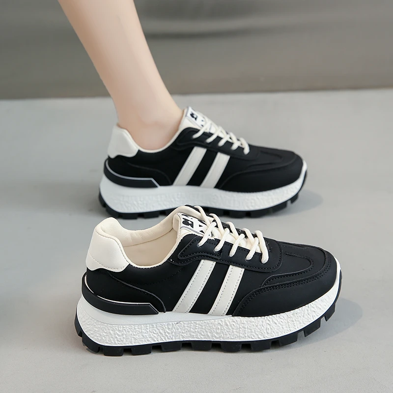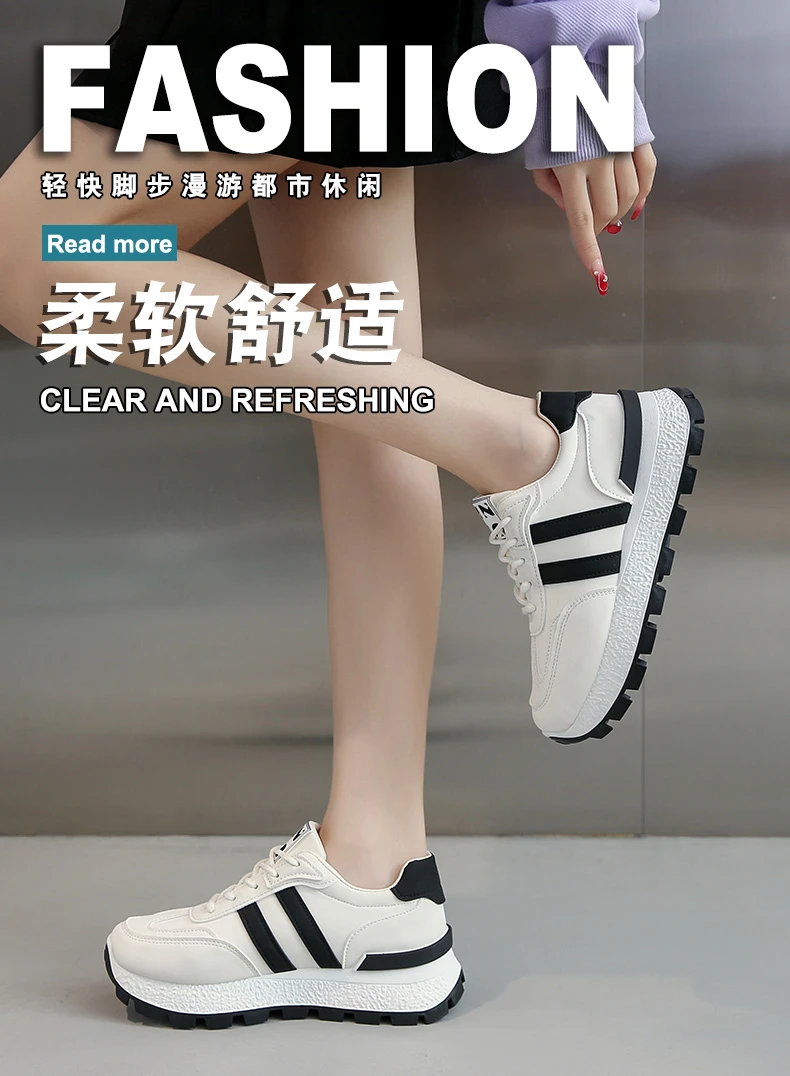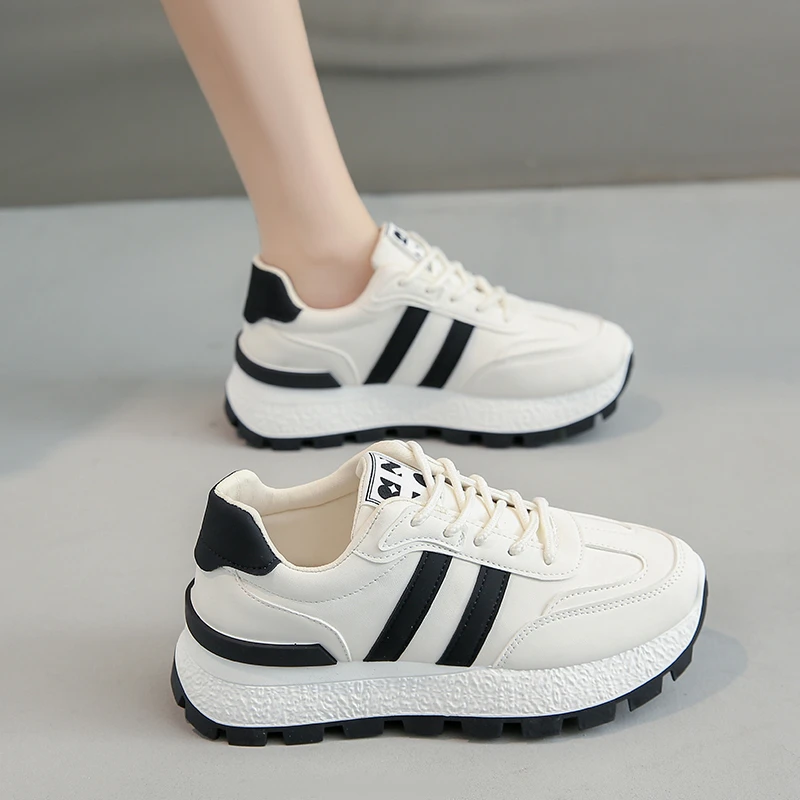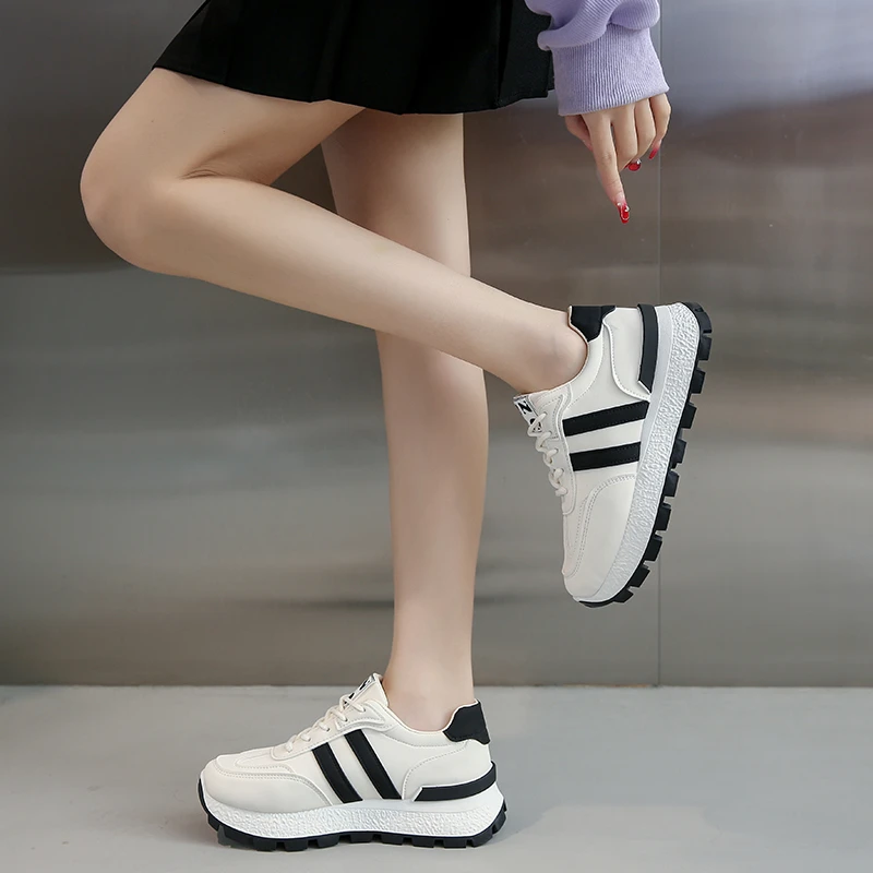 Striped Women Thick Sole Board Shoes Front Lace Up Small White Shoes Women Low Top Casual Sports Sneakers Large size 36-44