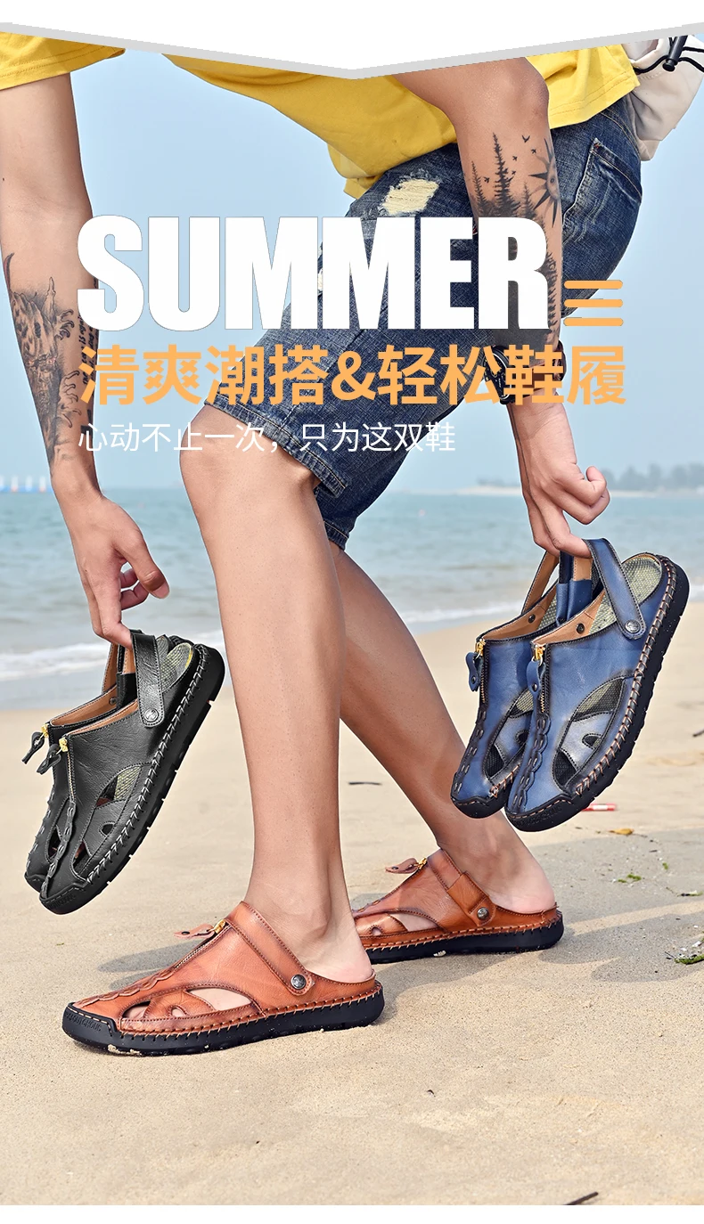 Summer Men Sandals Genuine Leather Mens Casual Shoes Outdoor Men Leather Sandals for Men Beach Shoes Roman mens Shoes