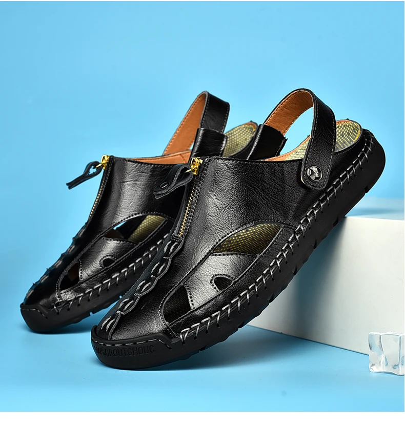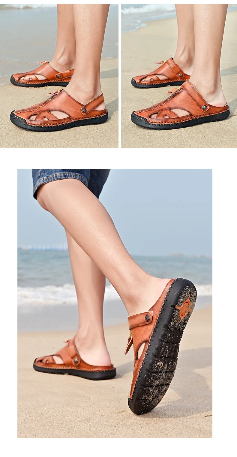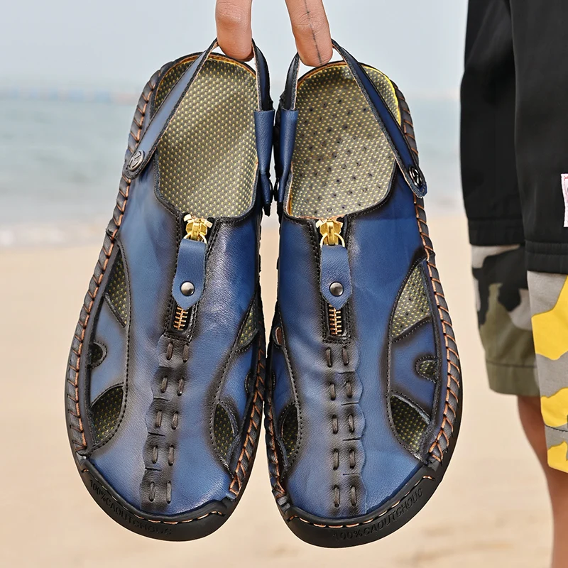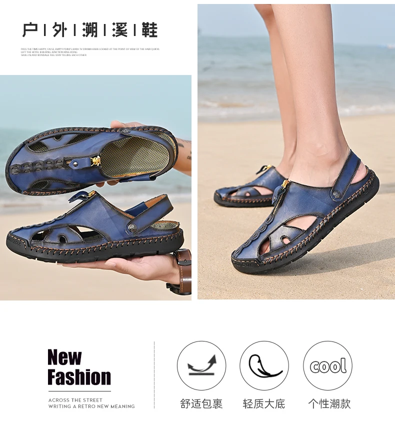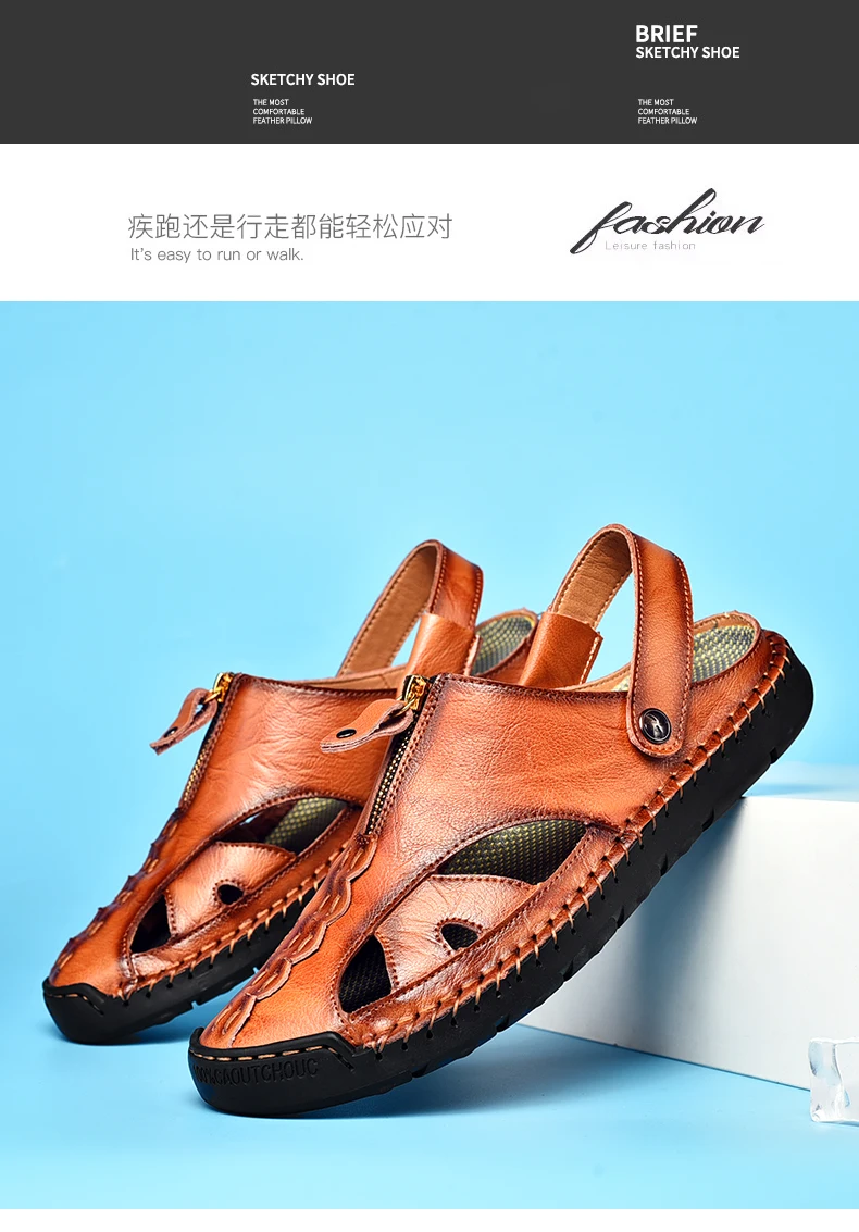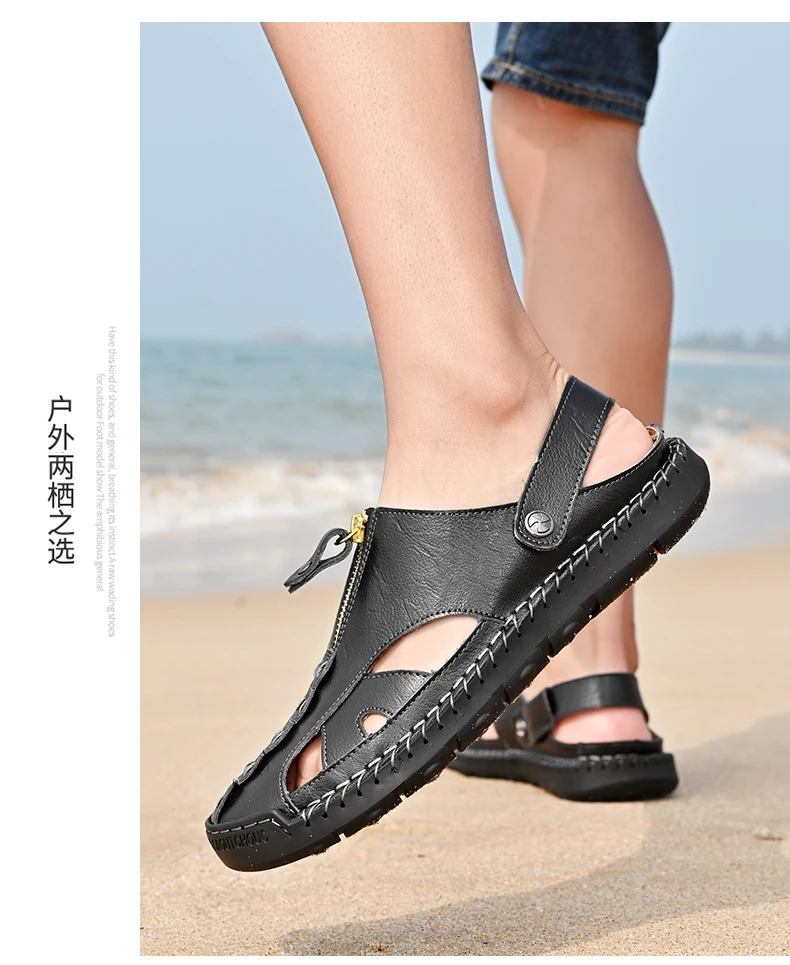 Summer Men Sandals Genuine Leather Mens Casual Shoes Outdoor Men Leather Sandals for Men Beach Shoes Roman mens Shoes
