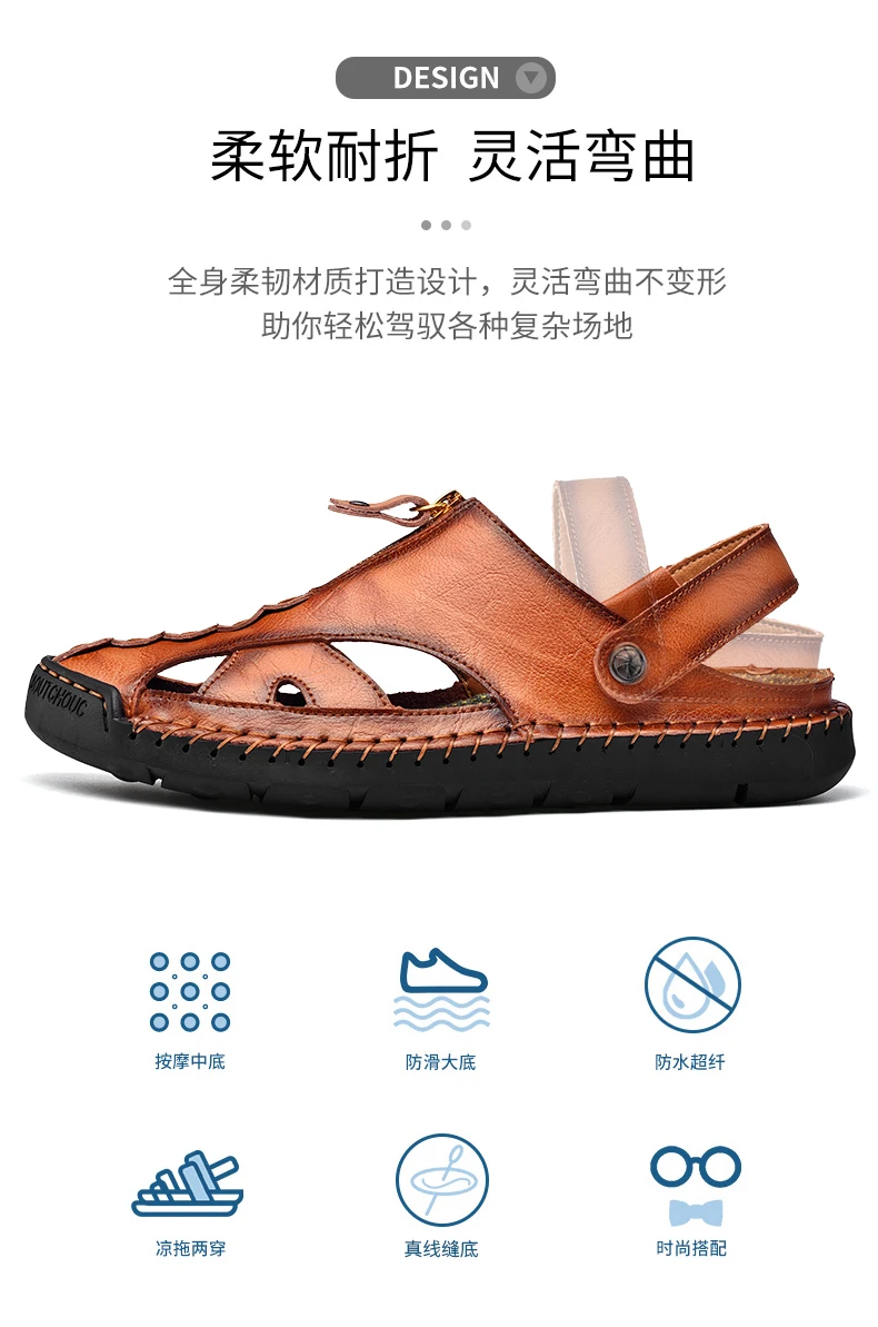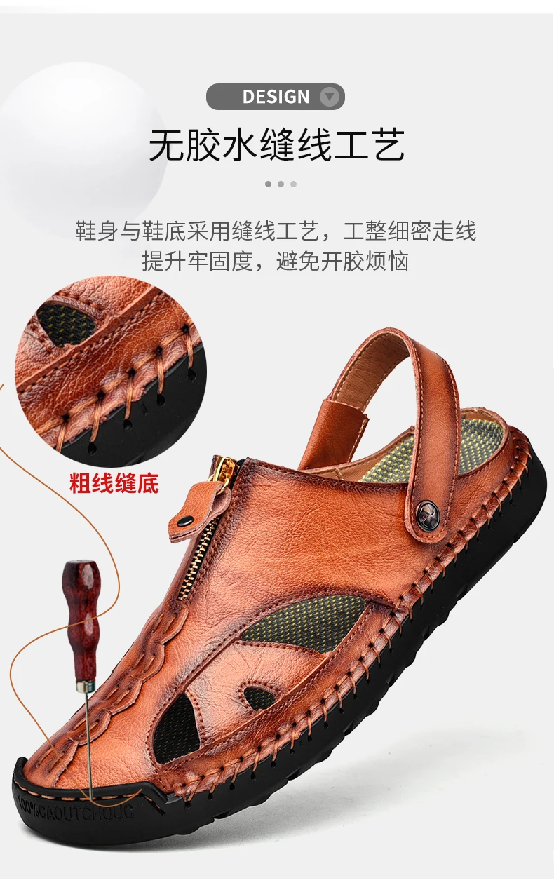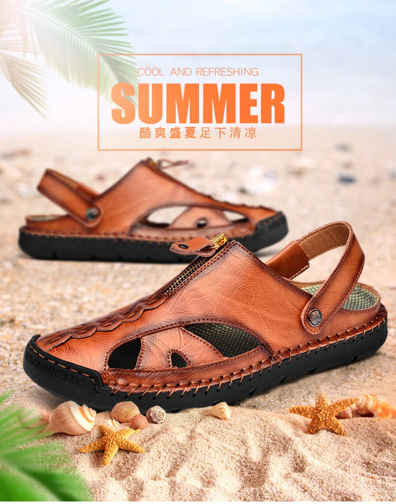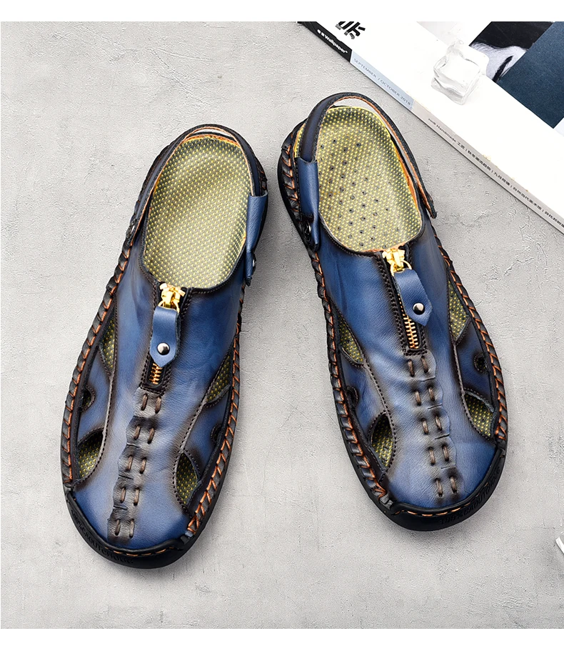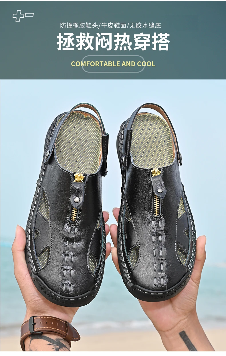 Summer Men Sandals Genuine Leather Mens Casual Shoes Outdoor Men Leather Sandals for Men Beach Shoes Roman mens Shoes