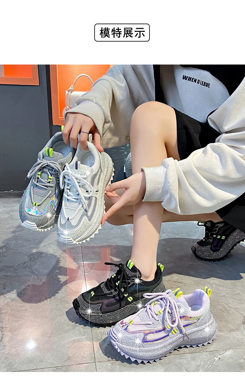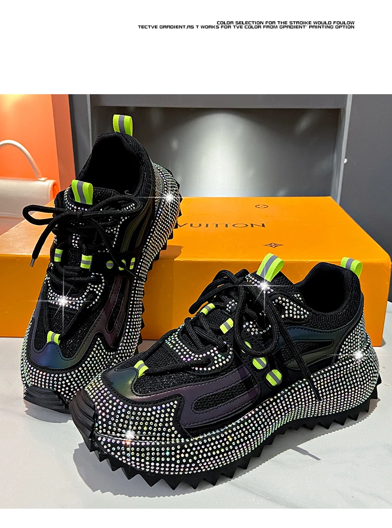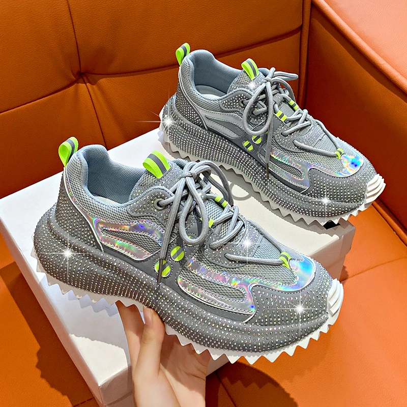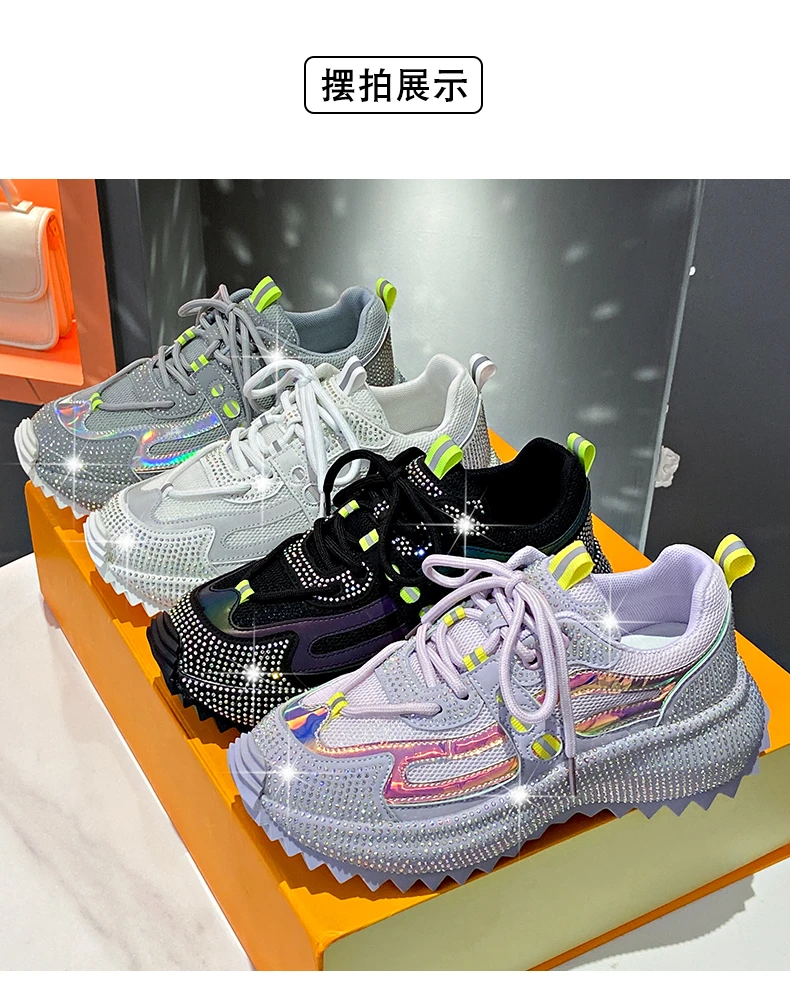 Water Diamond Outdoor Night Running Shoes Thick Bottom Spring Breathable Sports and Leisure Versatile Women’s Shoes Sports Shoes