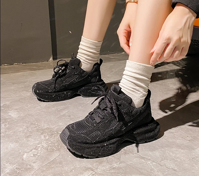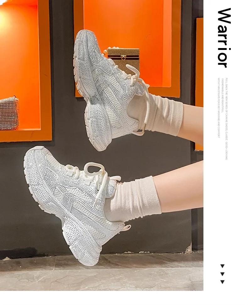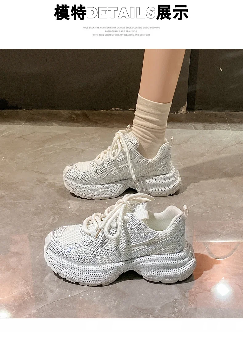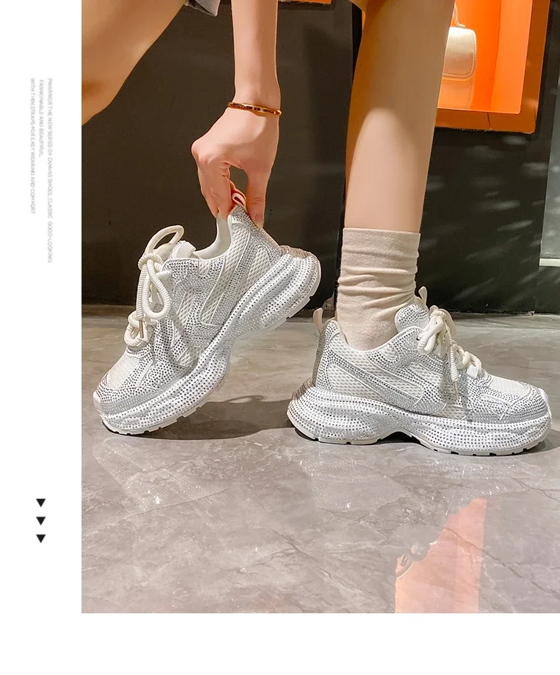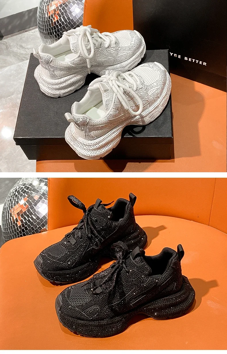 Women Luxury Platform Sneakers Bling Bling Casual Outdoor Shoes Designer Running Tennis Sneakers Lace Up Fashion Sport Shoes