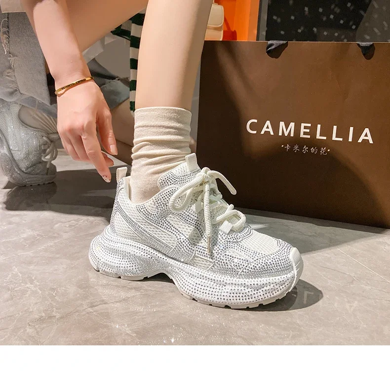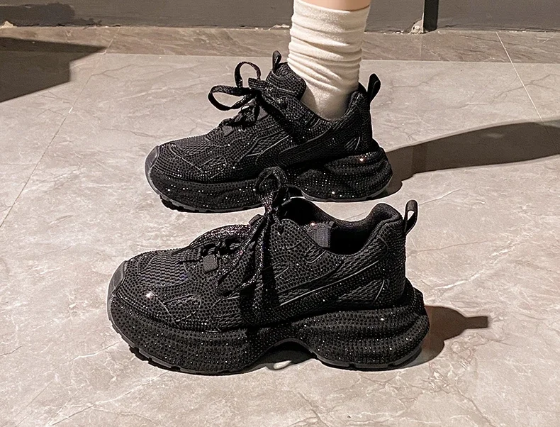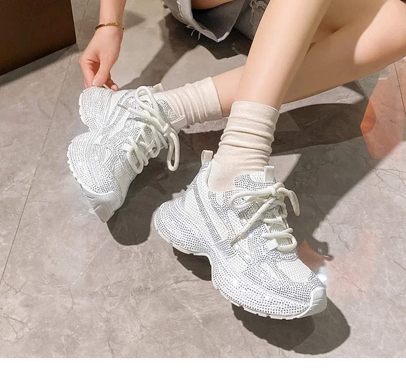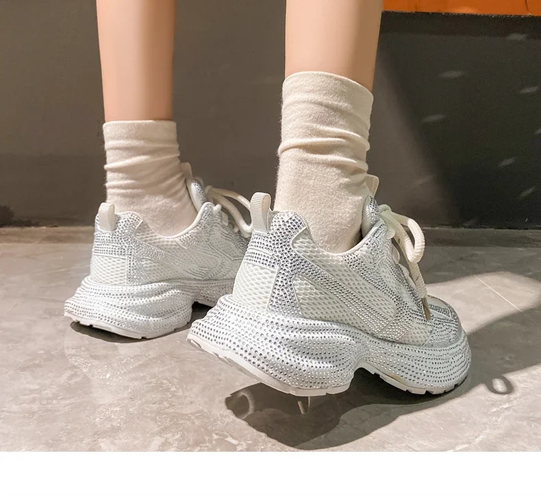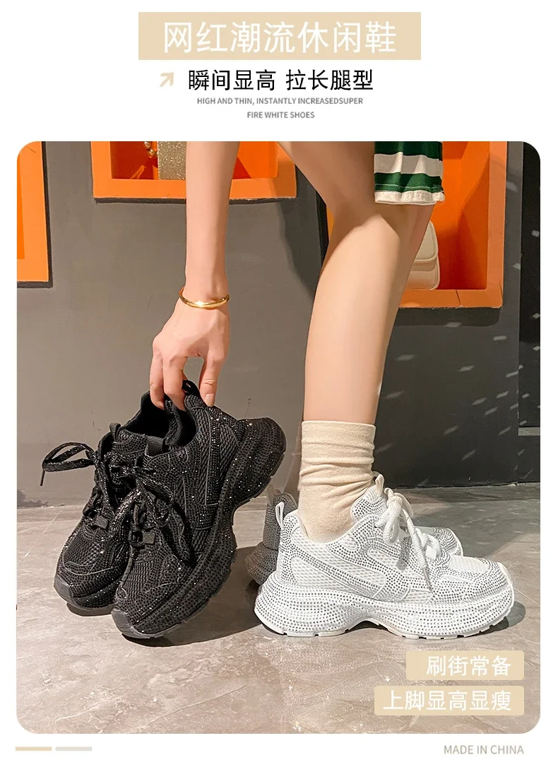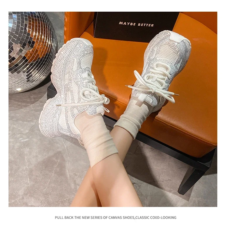 Women Luxury Platform Sneakers Bling Bling Casual Outdoor Shoes Designer Running Tennis Sneakers Lace Up Fashion Sport Shoes