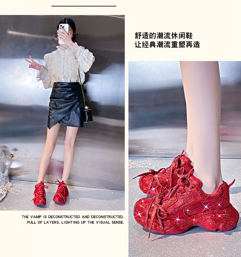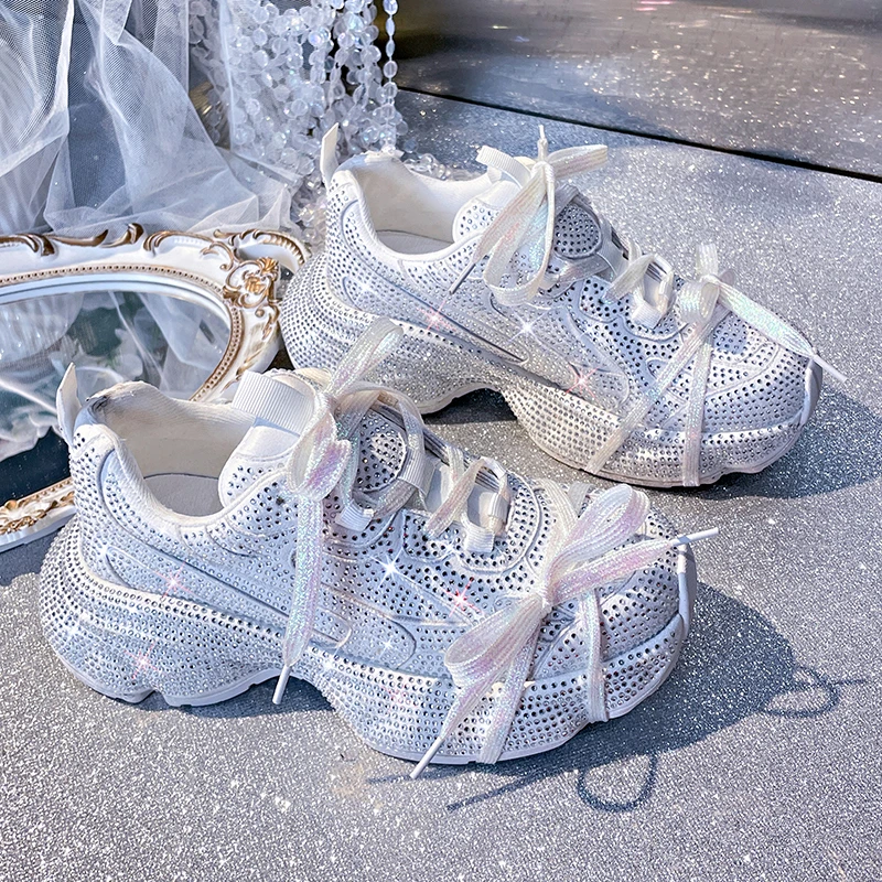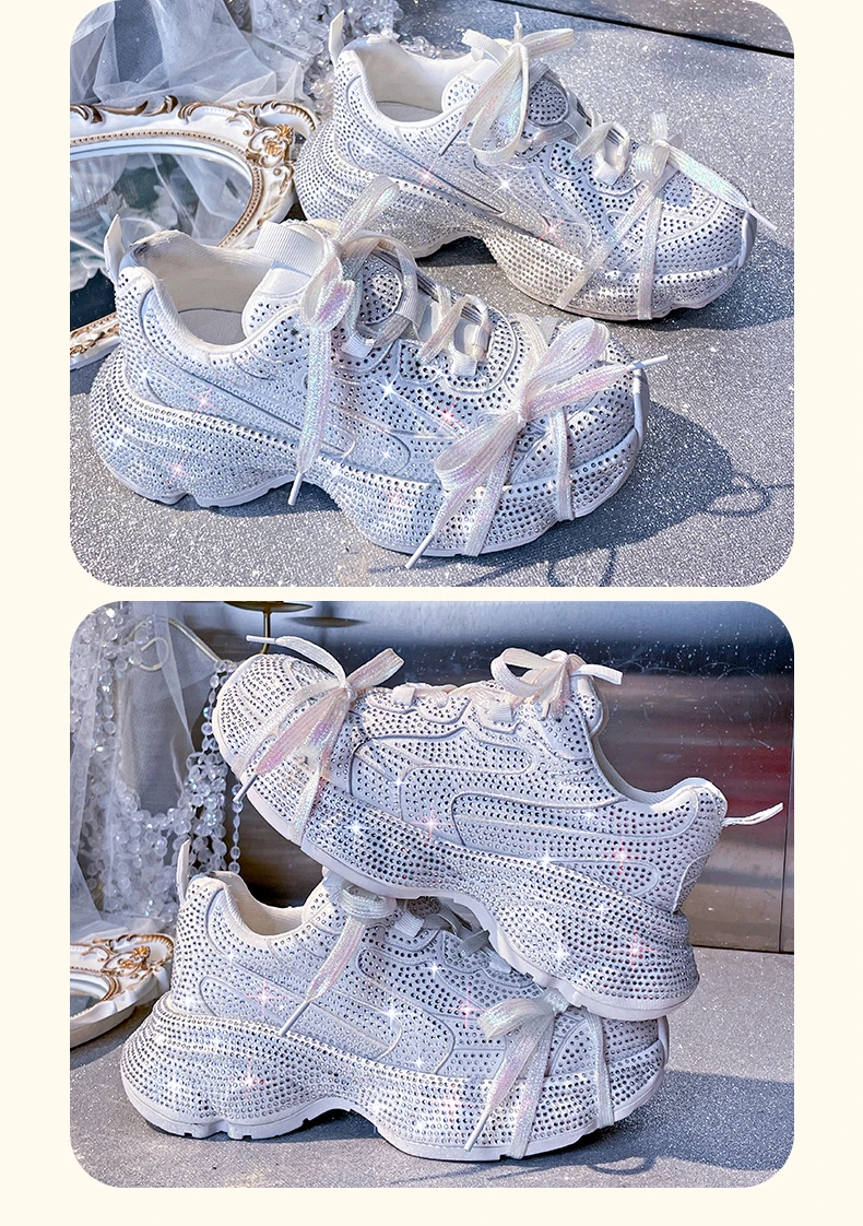 Women Luxury Platform Sneakers Bling Bling Casual Outdoor Shoes High Quality Running Tennis Sneakers Lace Up Fashion Sport Shoes