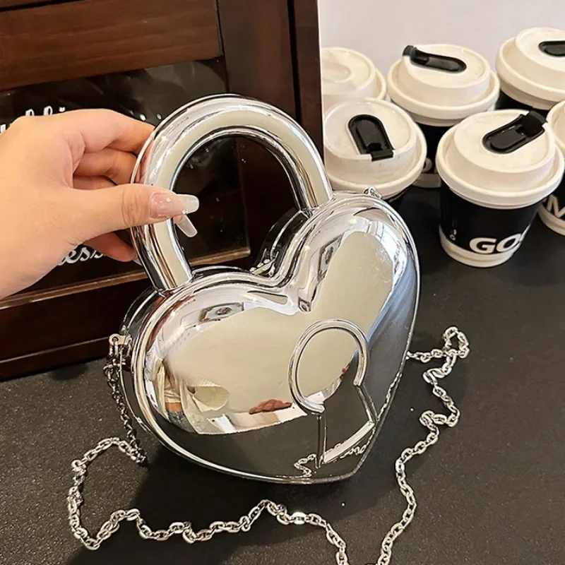 Women Luxury Shoulder Bag 2024 New Bright Acrylic Evening Bag Lady Love Lock Shape Handbag for Wedding Party Gold Clutch Purse