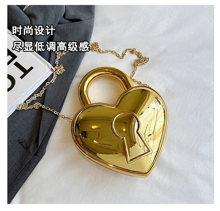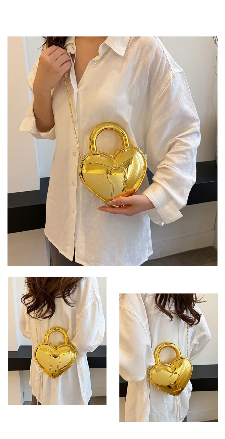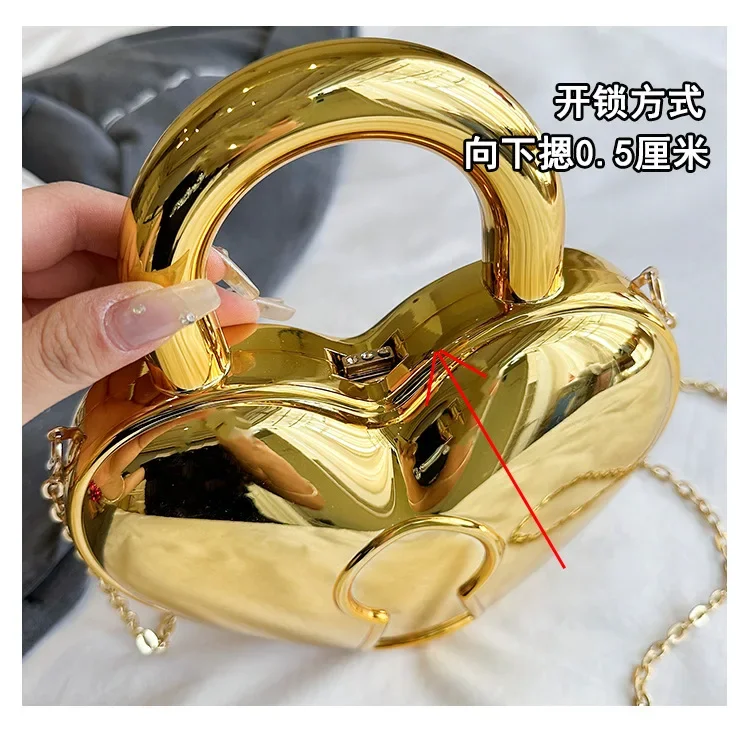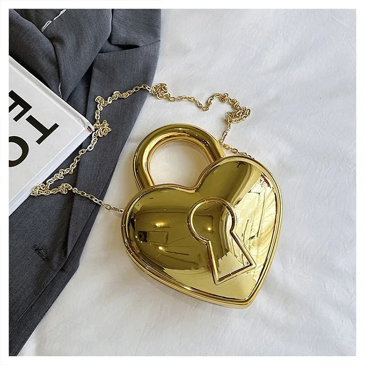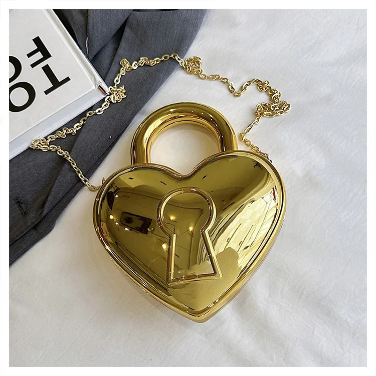 Women Luxury Shoulder Bag 2024 New Bright Acrylic Evening Bag Lady Love Lock Shape Handbag for Wedding Party Gold Clutch Purse