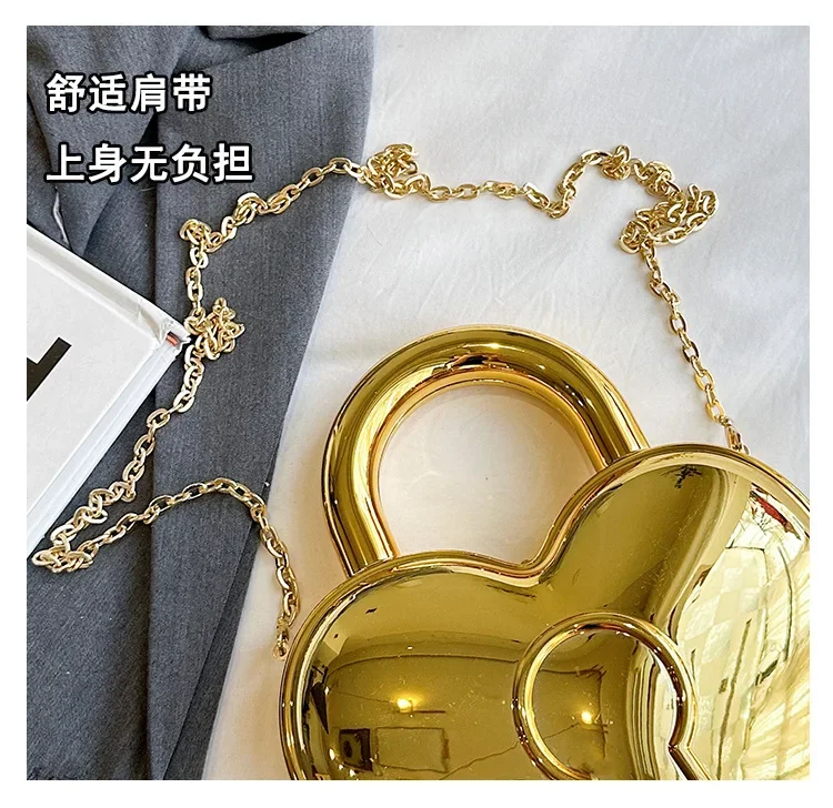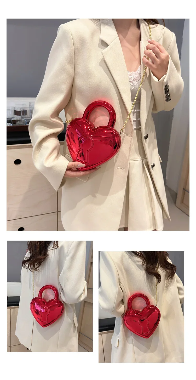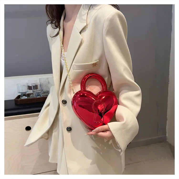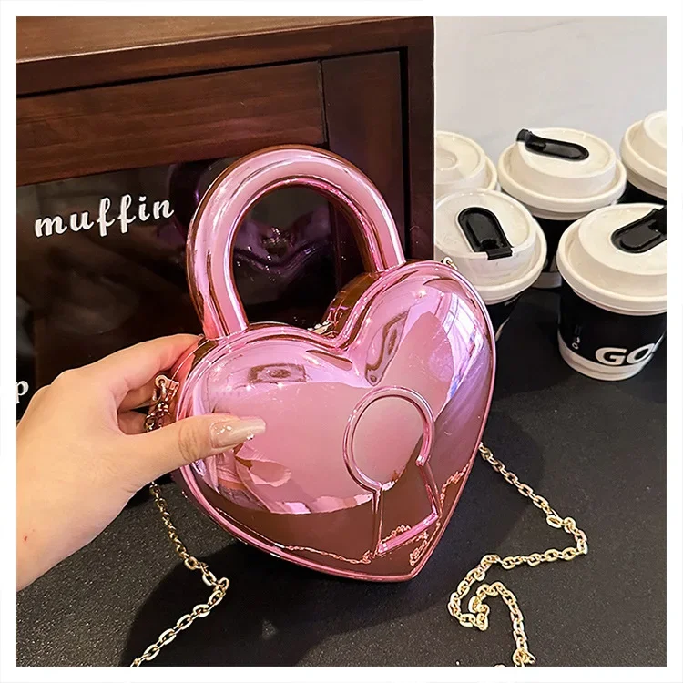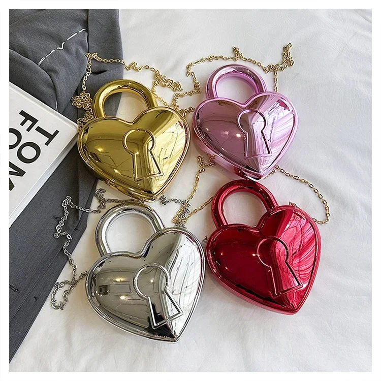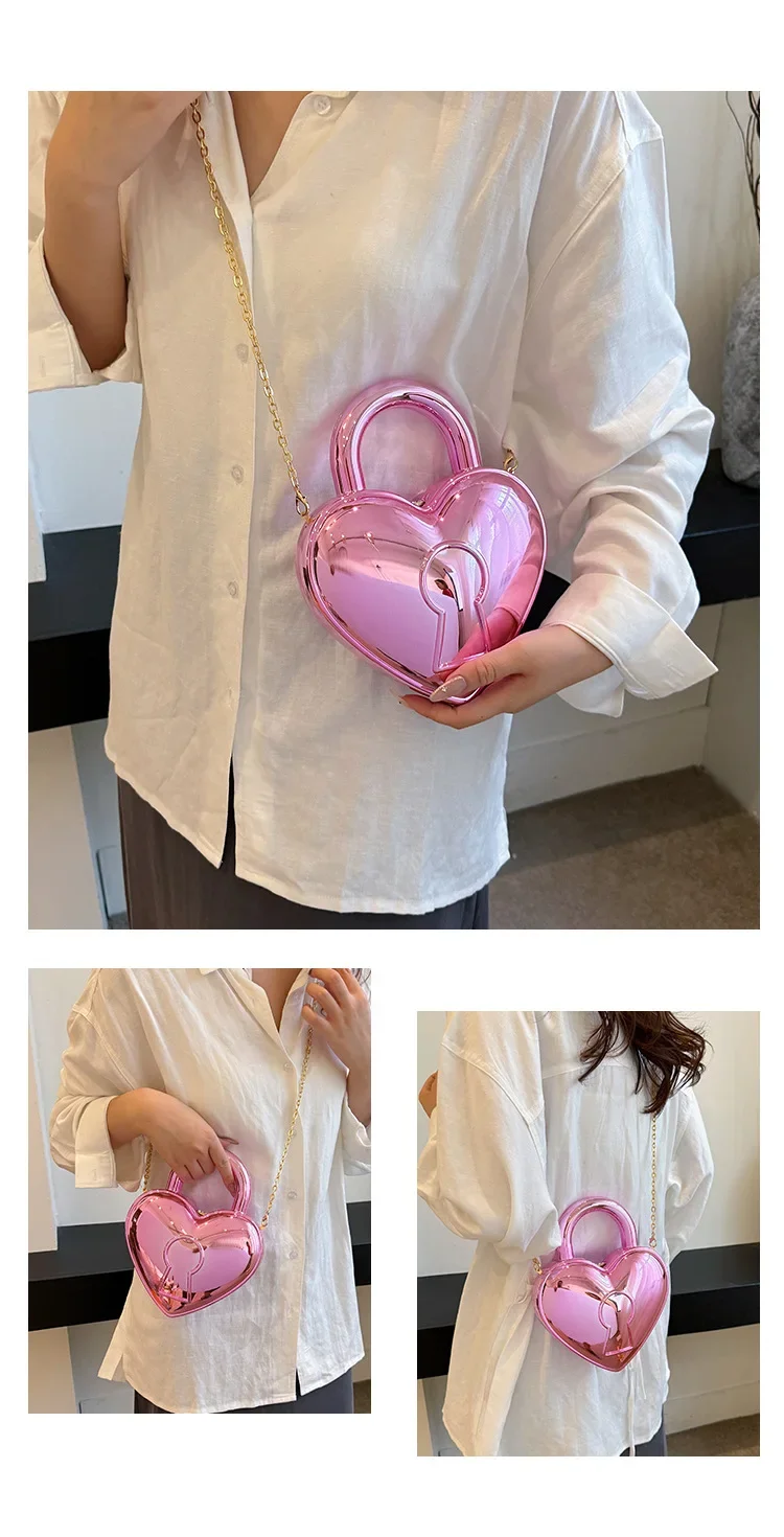 Women Luxury Shoulder Bag 2024 New Bright Acrylic Evening Bag Lady Love Lock Shape Handbag for Wedding Party Gold Clutch Purse