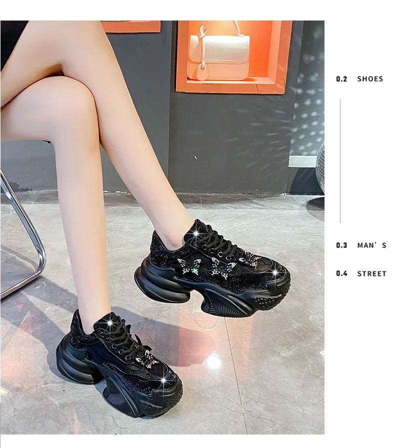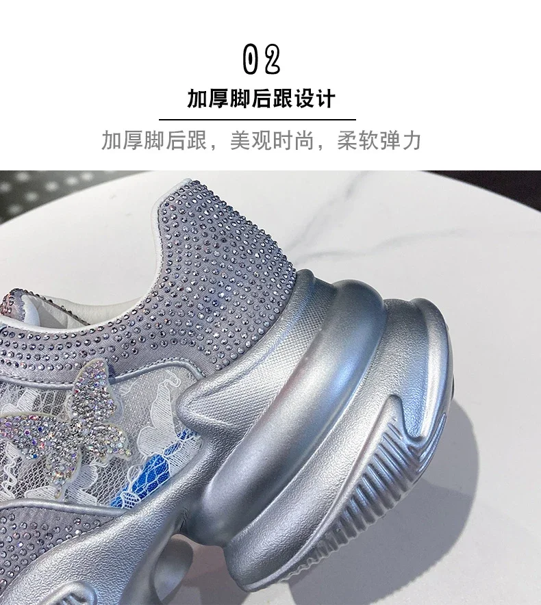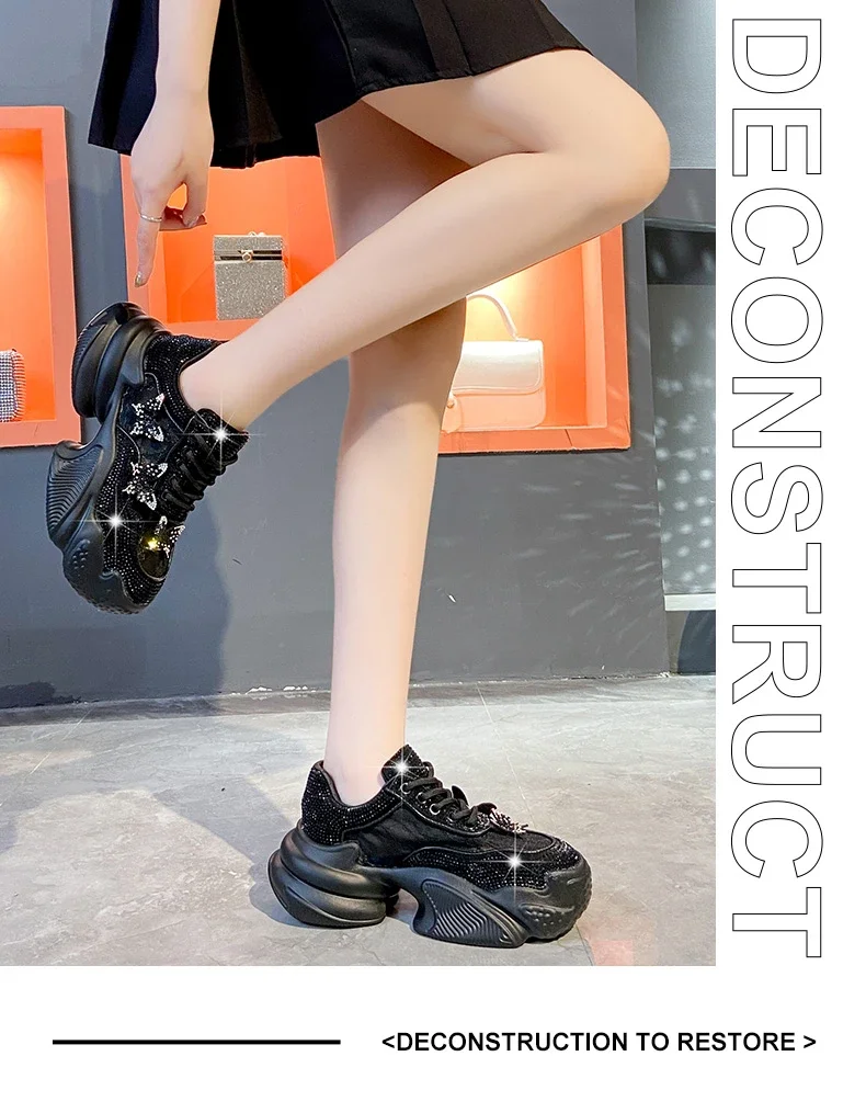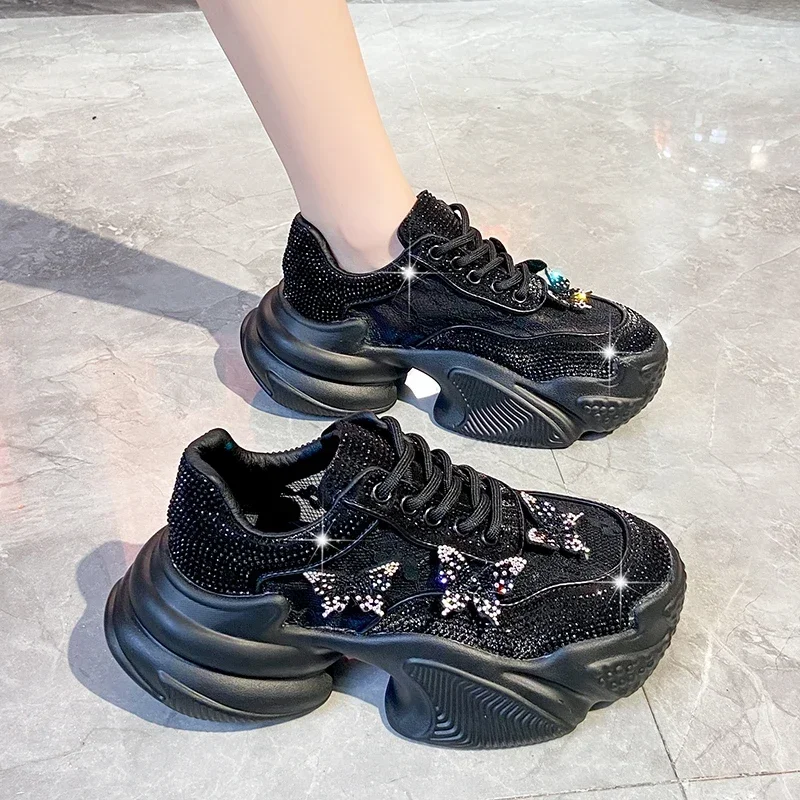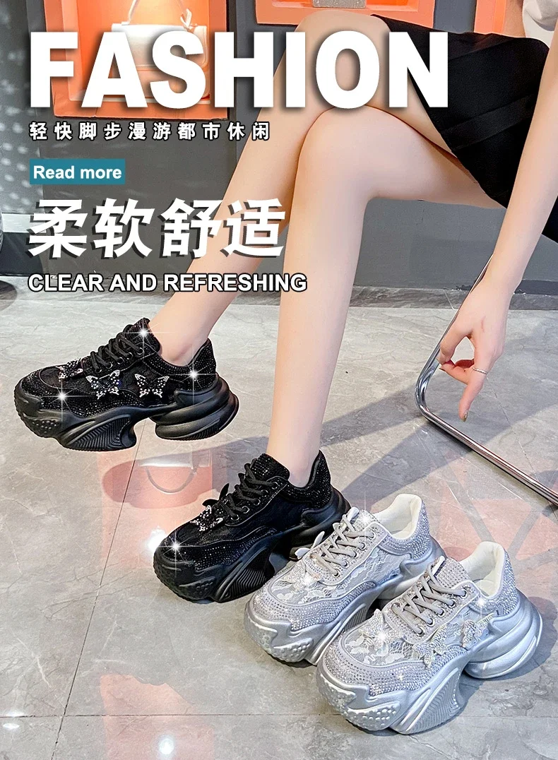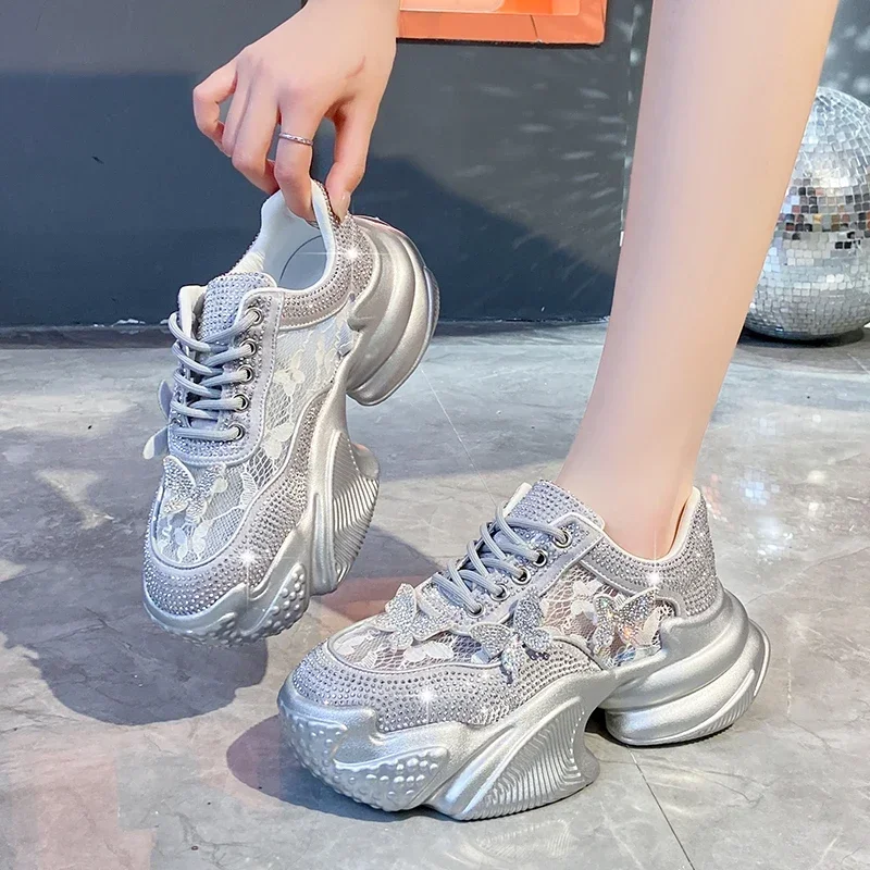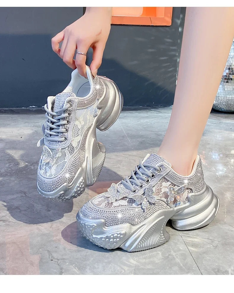 Women Platform Sneakers Shine Butterfly Design Casual Shoes Vintage Lace Up Running Sneakers Tennis Outdoor Sports Shoes Female