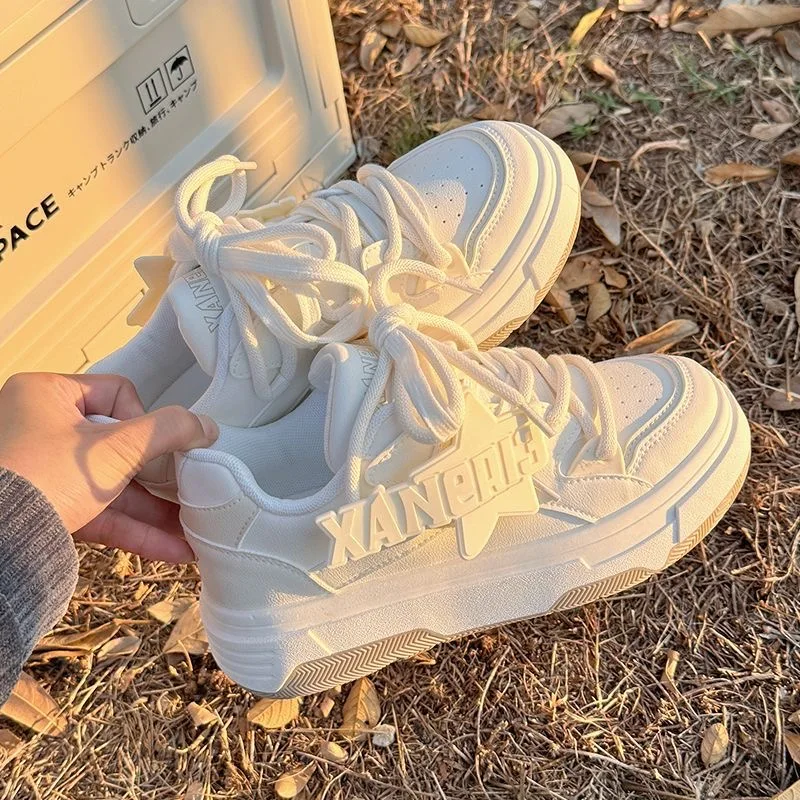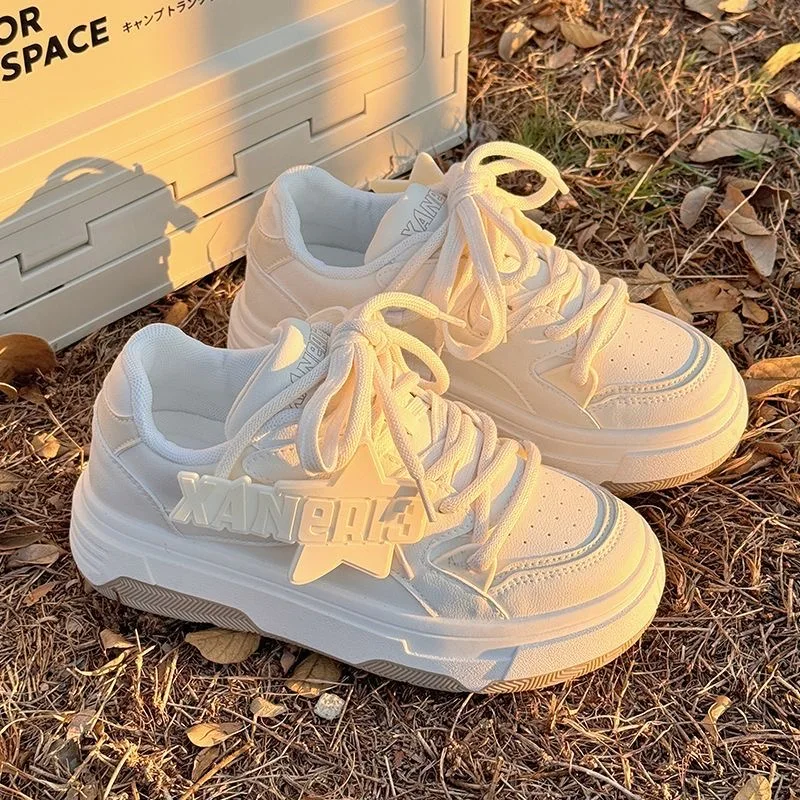 Women Platform Sneakers Star Design Lace Up Skateboard Flat Outdoor Comfortable Running Sports Shoes Tennis Jogging Sneakers