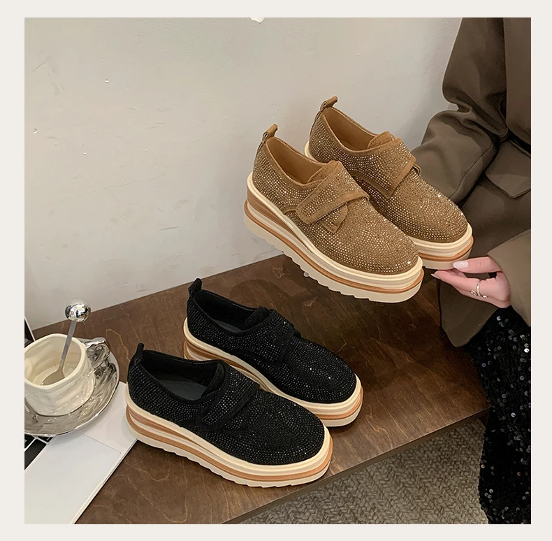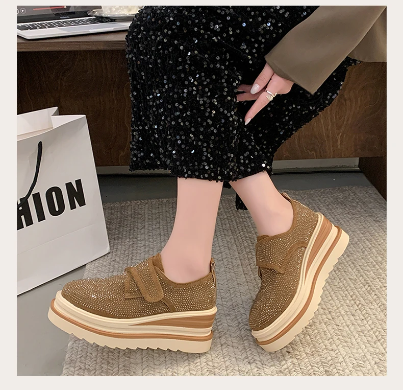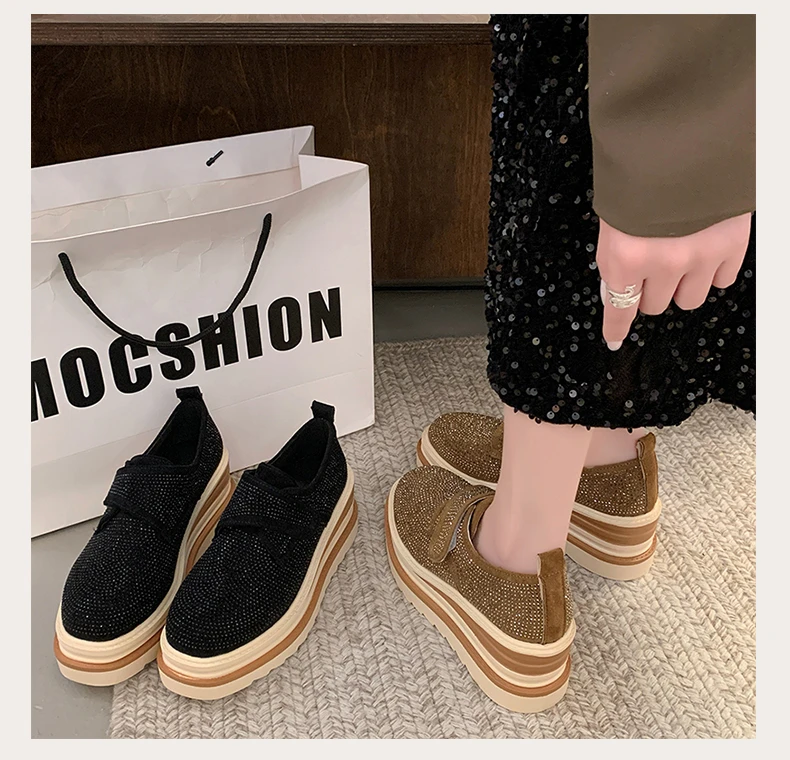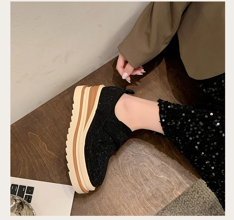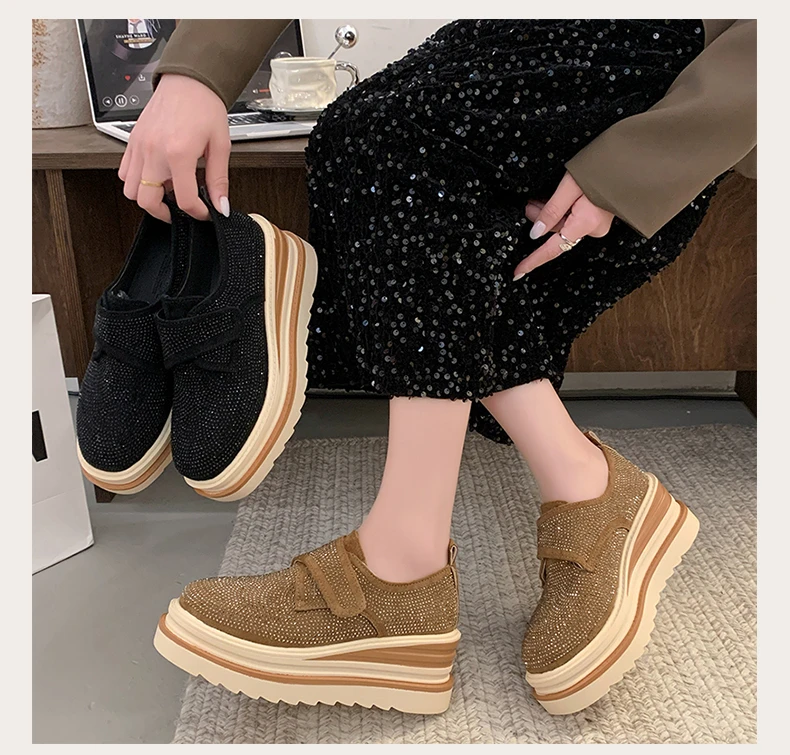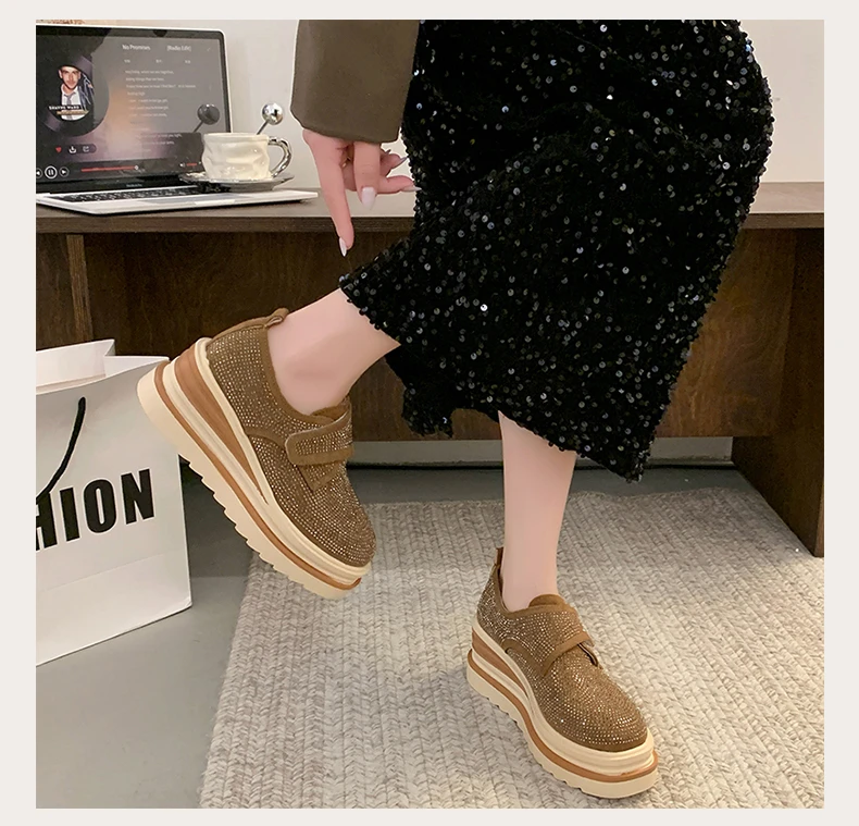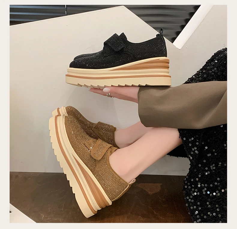 Women’s Designer Platform Shoes Height Increase by 8cm Flash Crystal Casual Sports Shoes Fashion Matte Luxury rhinestone Shoes