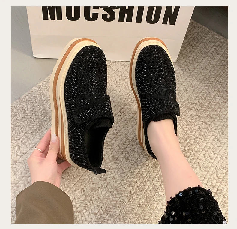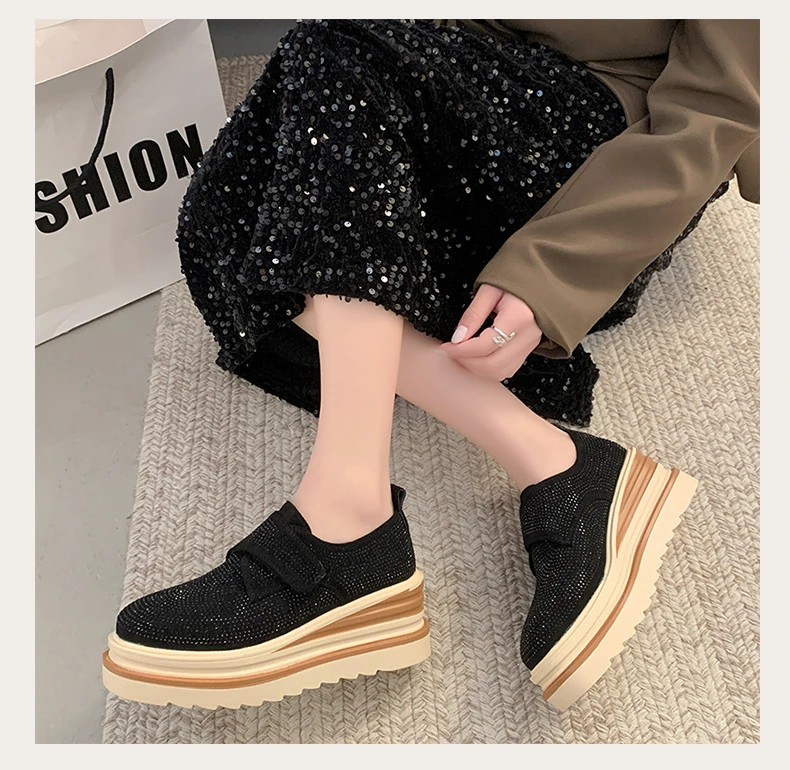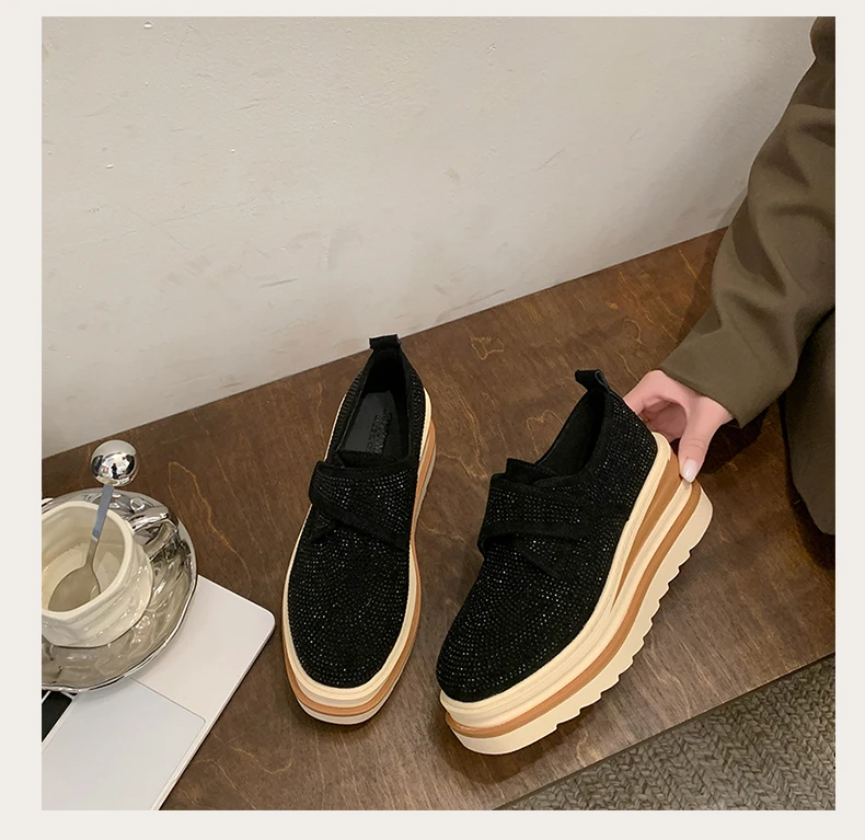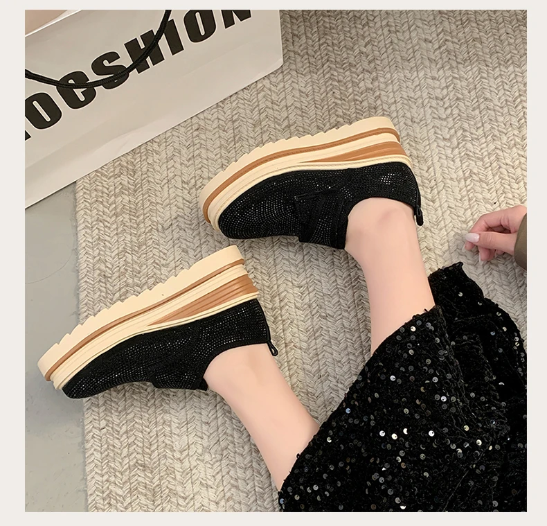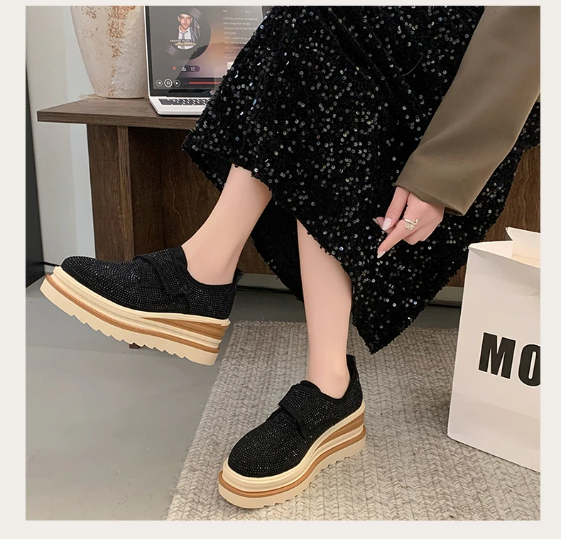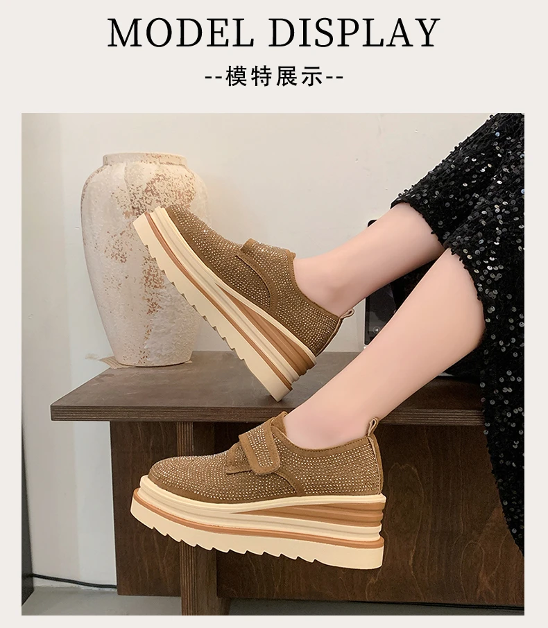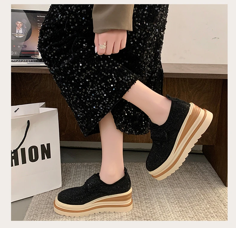 Women’s Designer Platform Shoes Height Increase by 8cm Flash Crystal Casual Sports Shoes Fashion Matte Luxury rhinestone Shoes