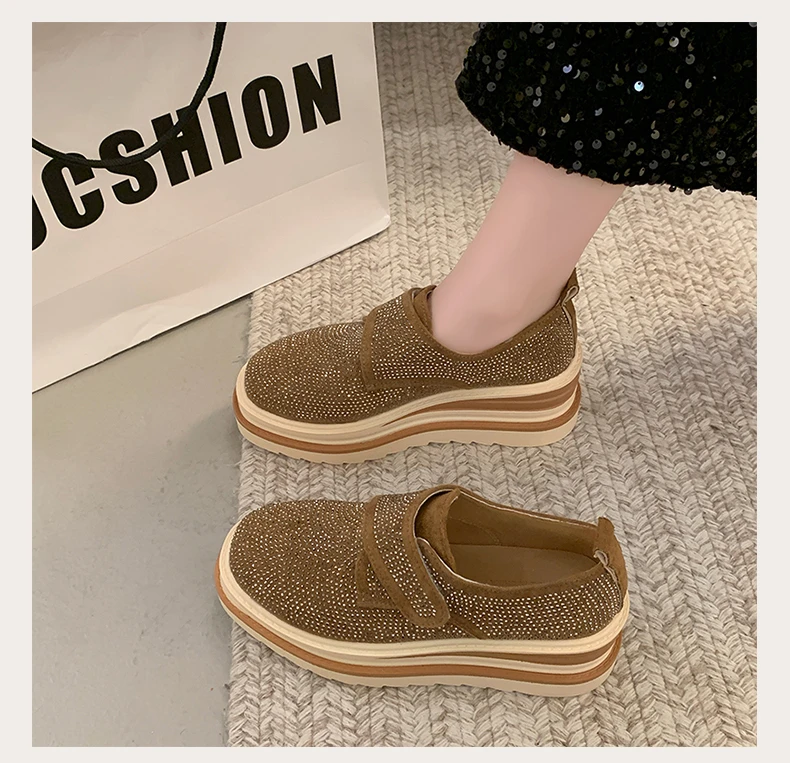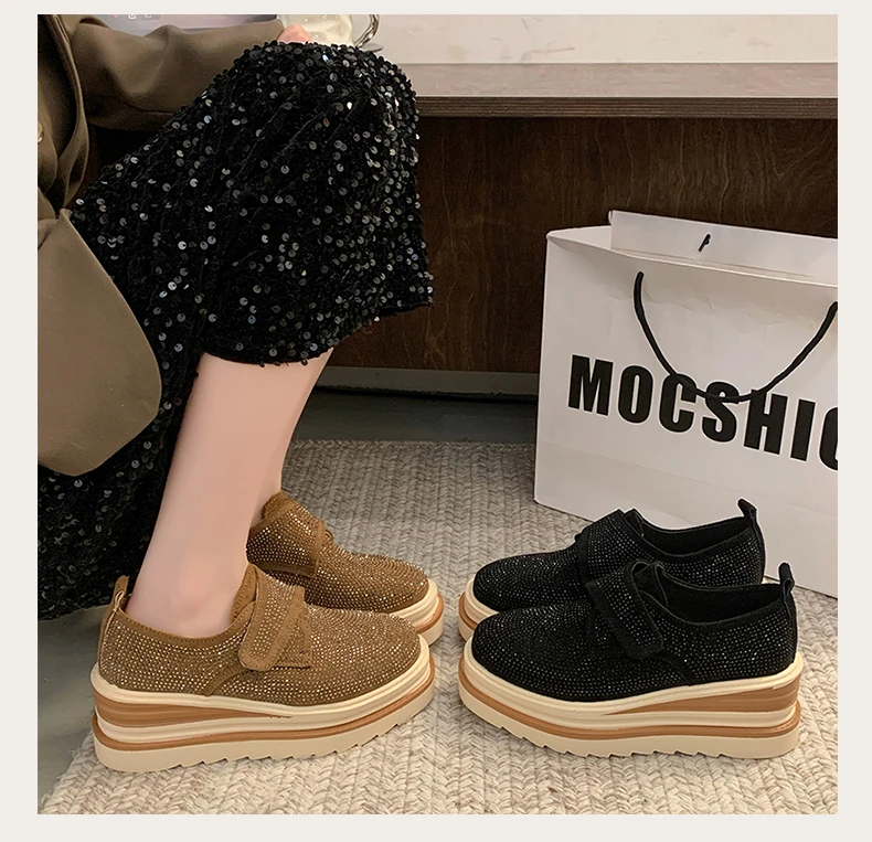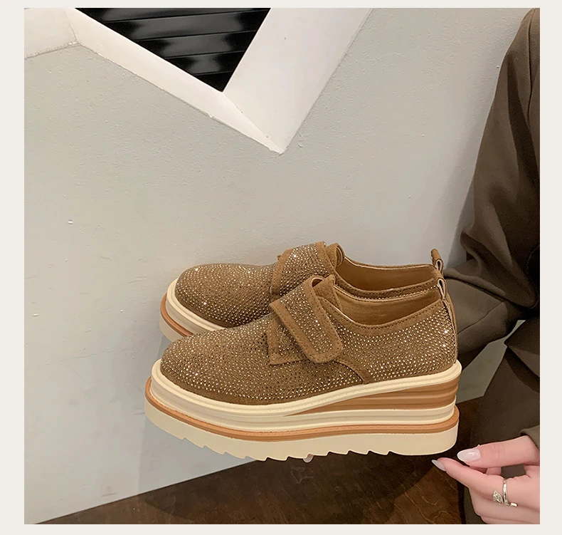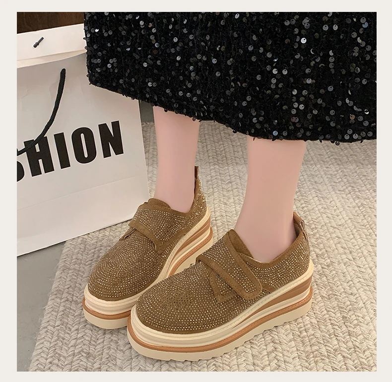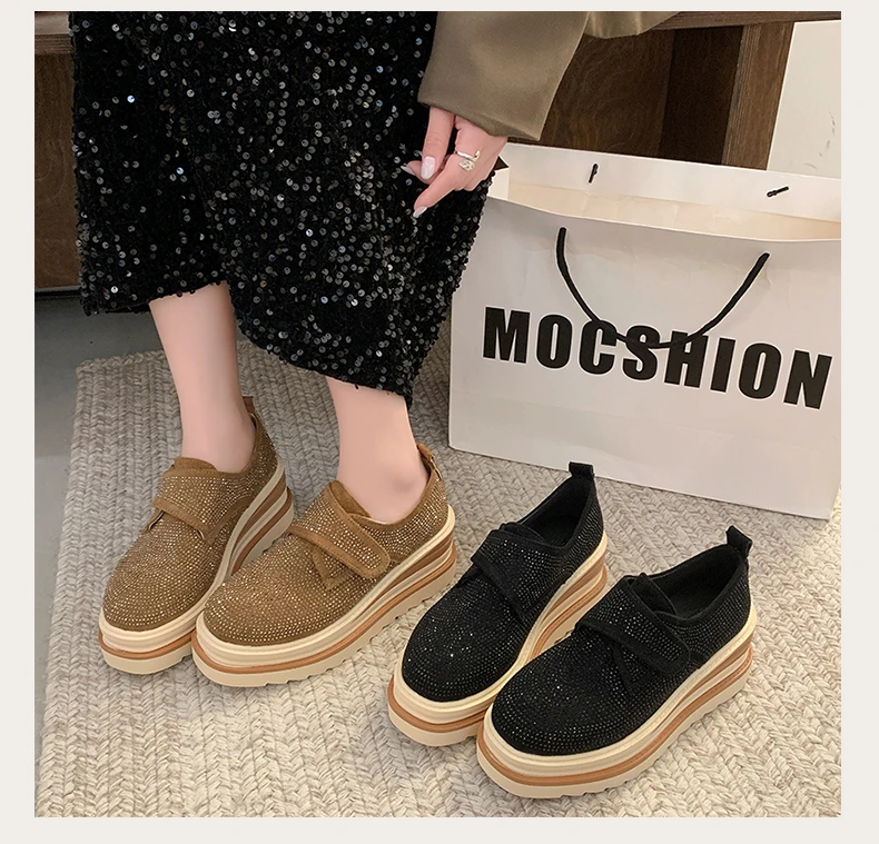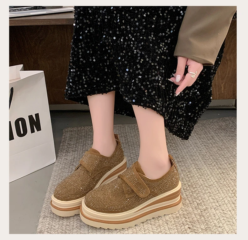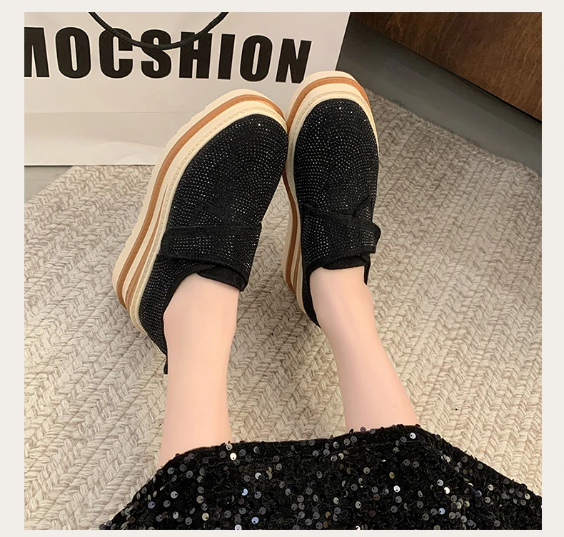 Women’s Designer Platform Shoes Height Increase by 8cm Flash Crystal Casual Sports Shoes Fashion Matte Luxury rhinestone Shoes
