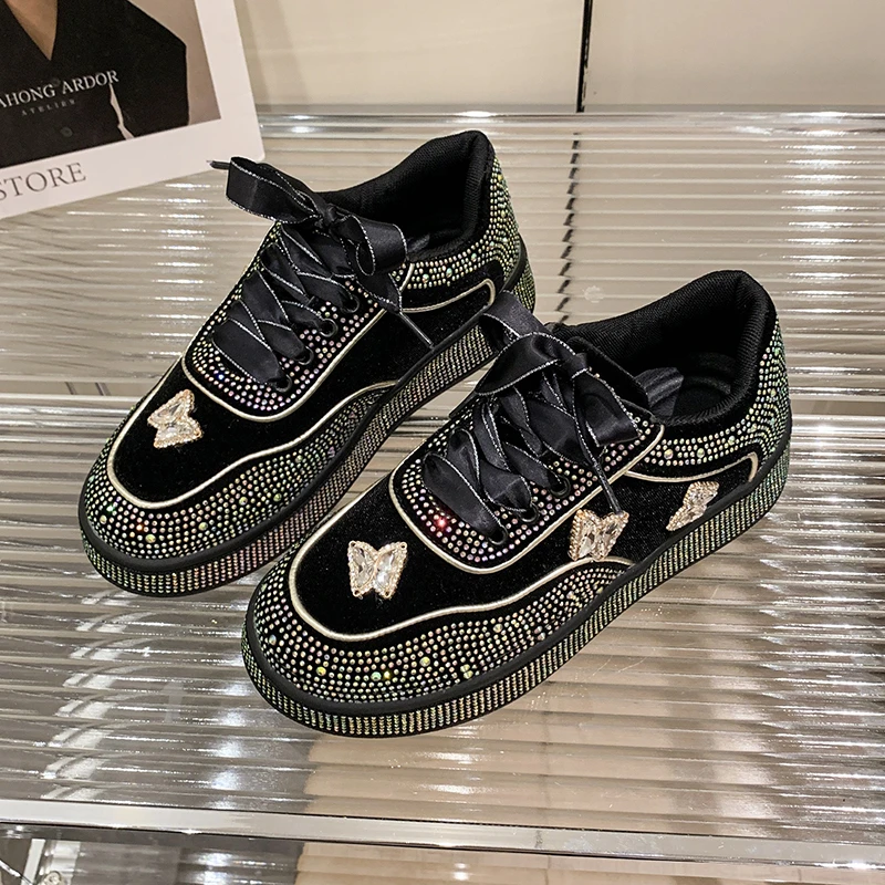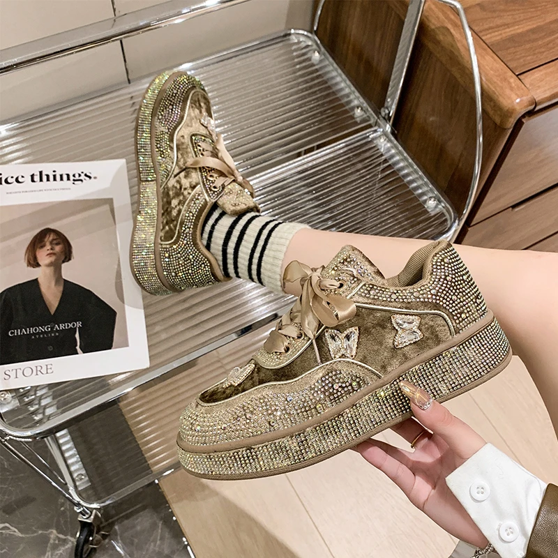 Women’s Fashion Casual Sports Shoes Luxury Water Diamond Women’s Vulcanized Shoes Designer Thick Bottom Suede Sports Shoes