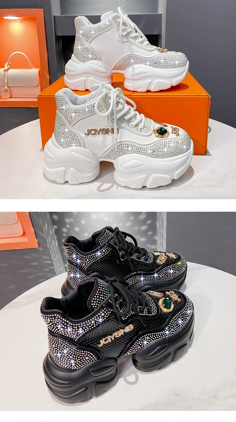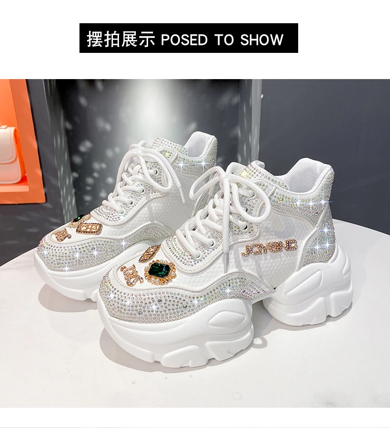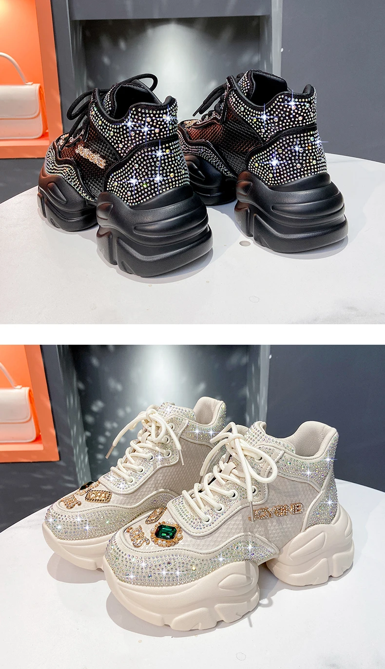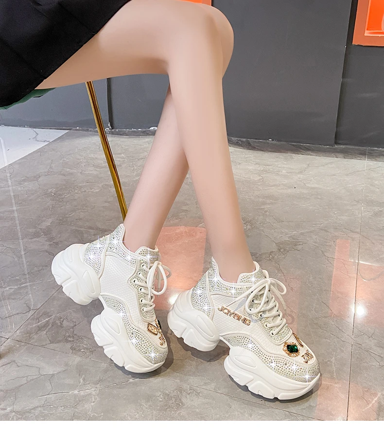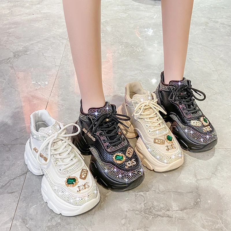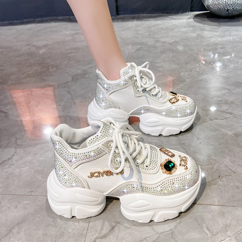 Women’s Luxury Diamond Sports Shoes Designer Platform Height Boosting Shoes Leather Casual Women’s Shoes zapatillas de mujer