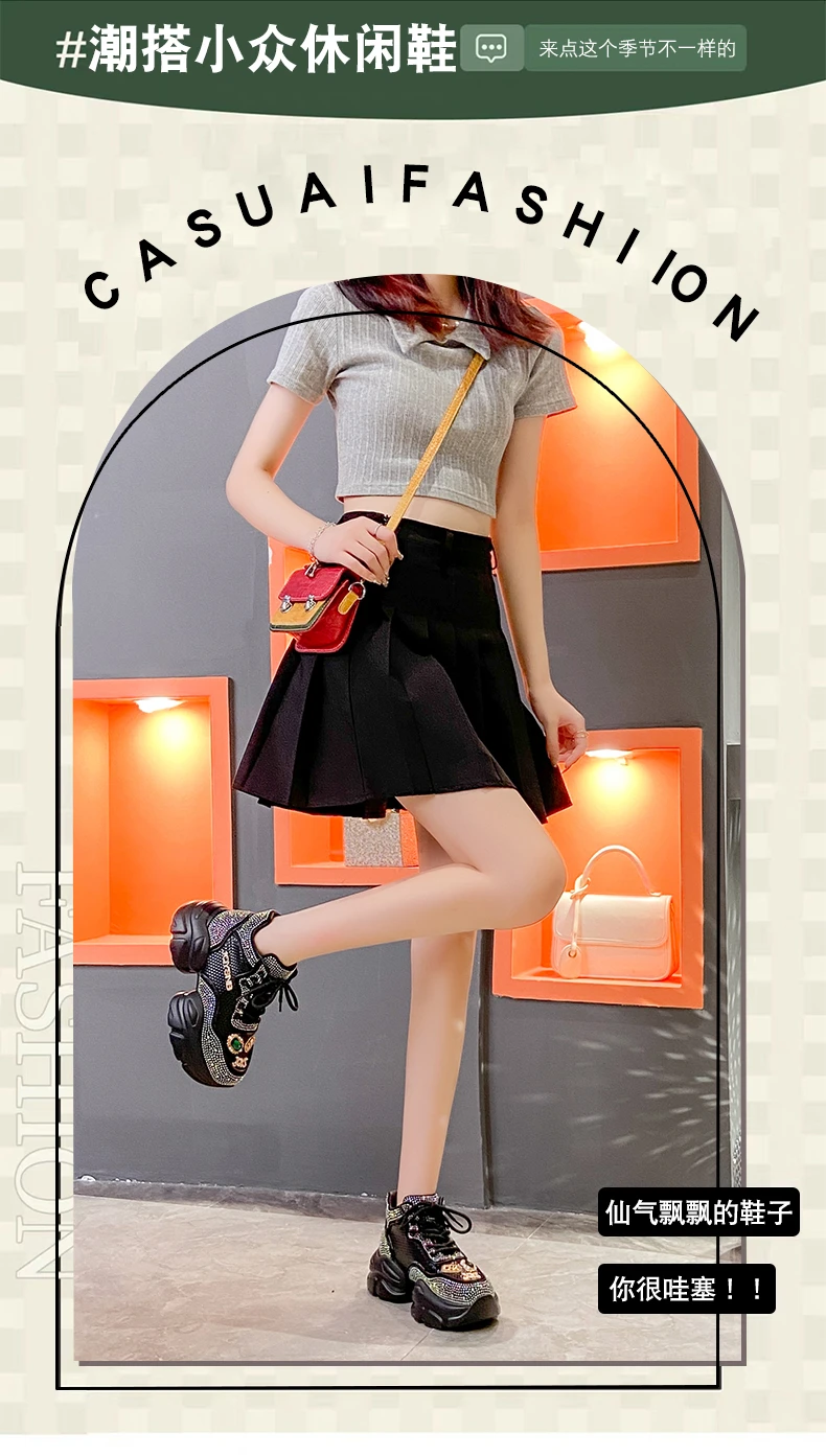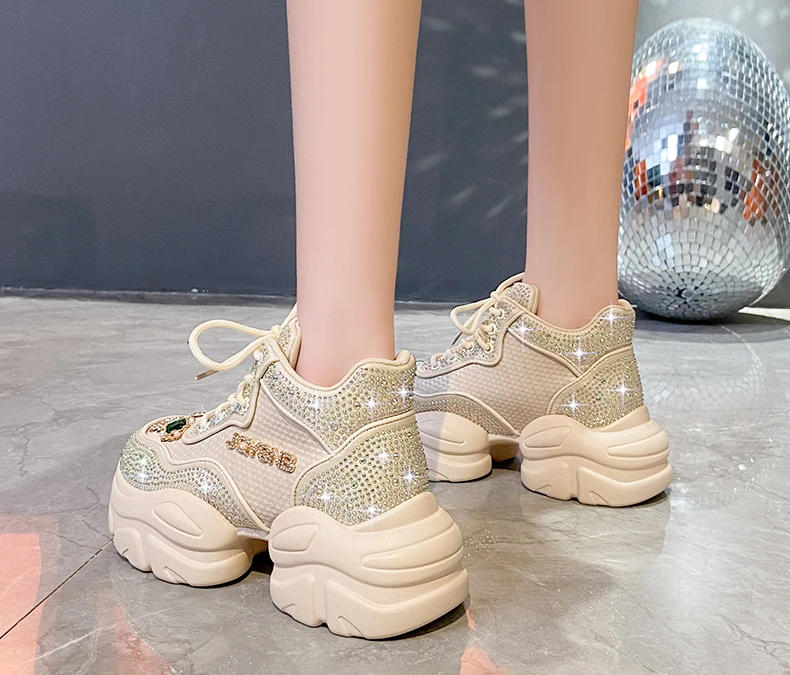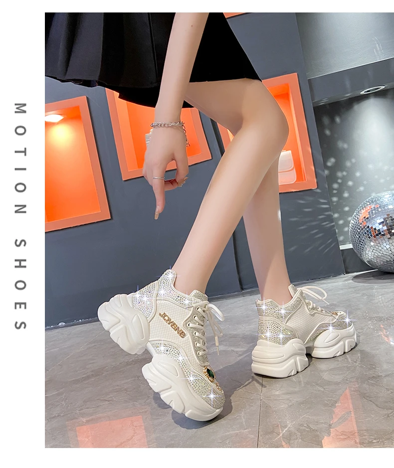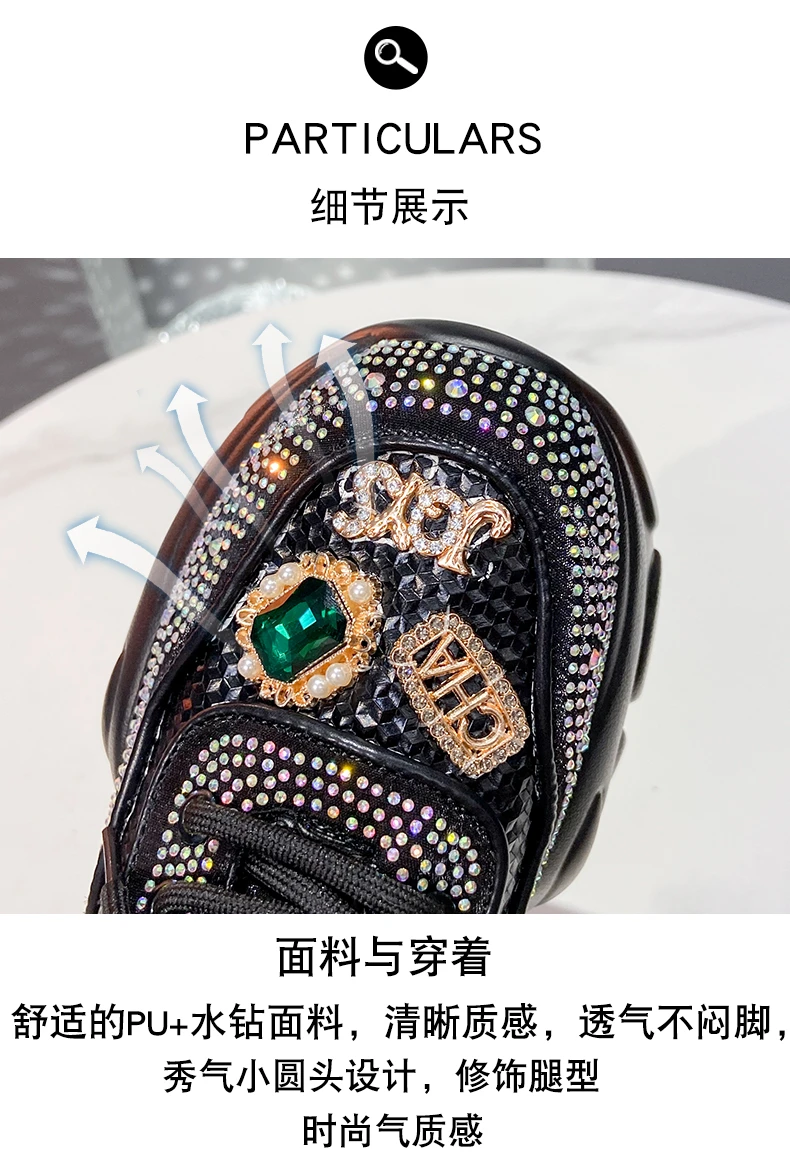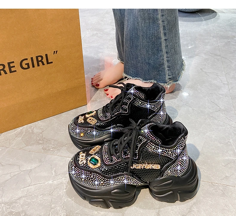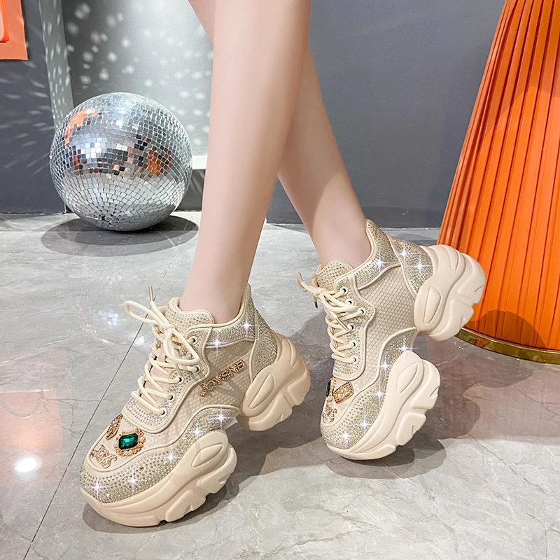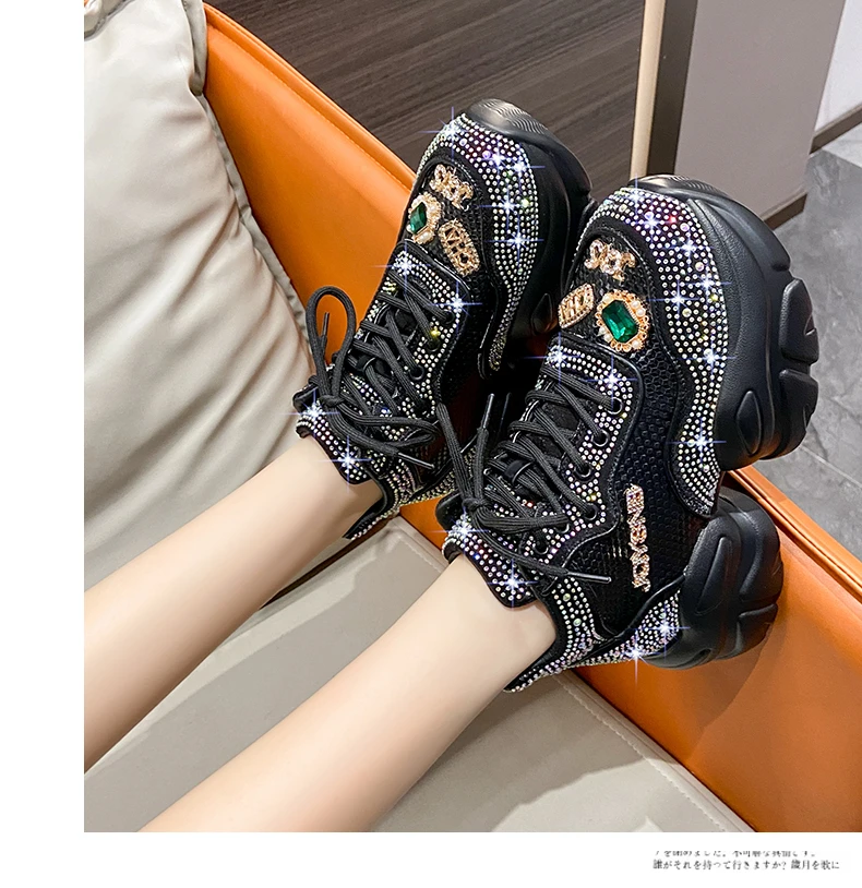 Women’s Luxury Diamond Sports Shoes Designer Platform Height Boosting Shoes Leather Casual Women’s Shoes zapatillas de mujer