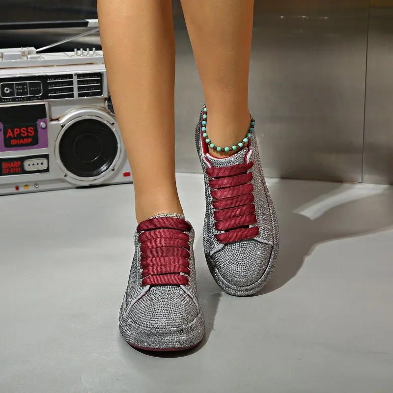 Women’s Luxury Shoes Full Diamond Lace up Women Sneakers Sparkling Water Diamond Flat Vulcanized Shoes Designer Platform Shoes