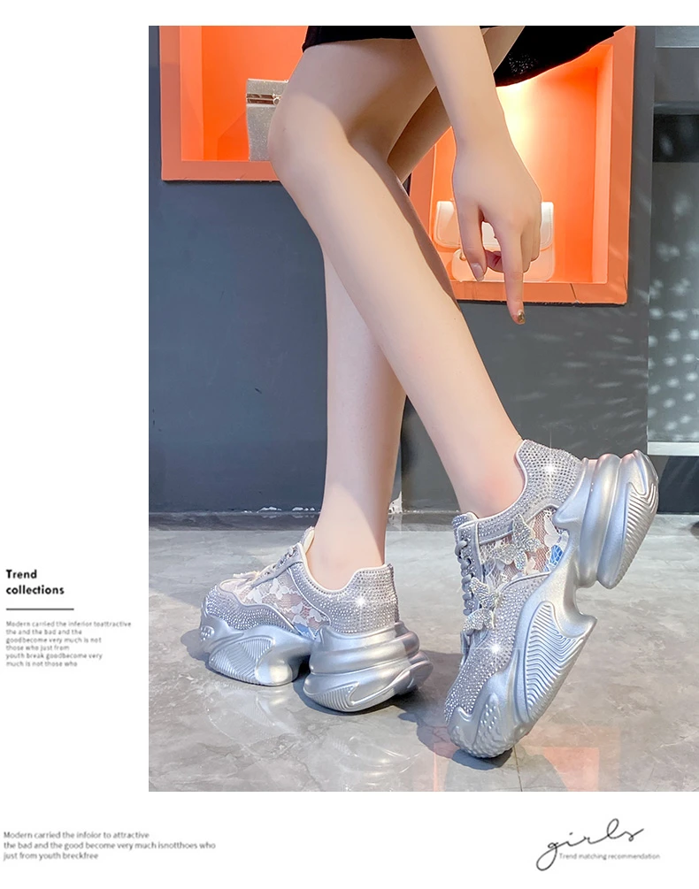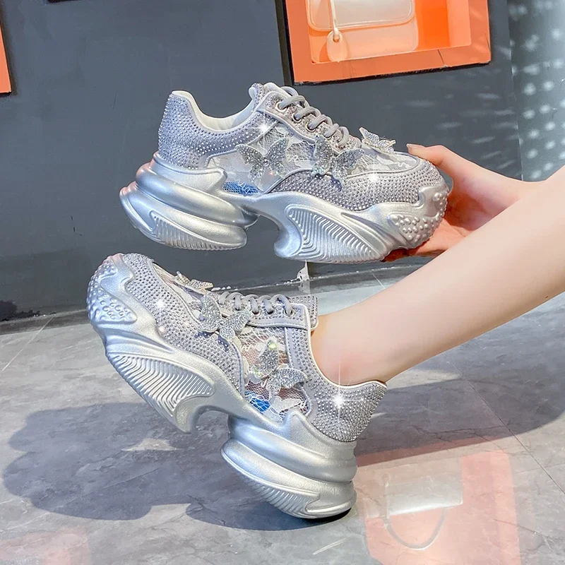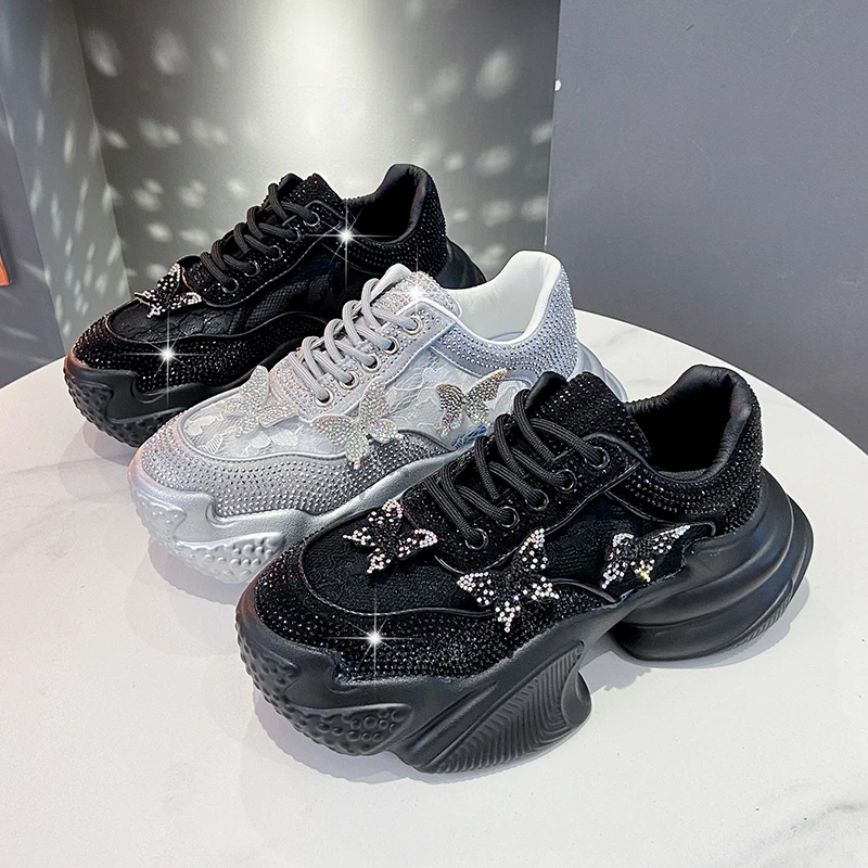 Women's Thick soled Sneakers Shining Butterfly Designer Casual Shoes Luxury Lace up Running Shoes Tennis Outdoor Sports Shoes
