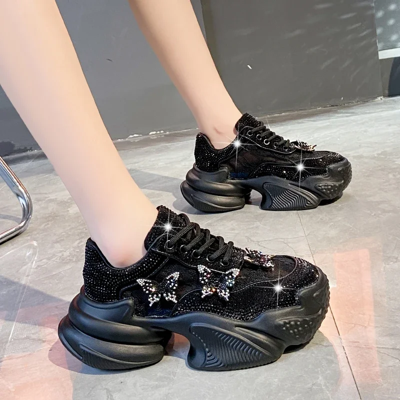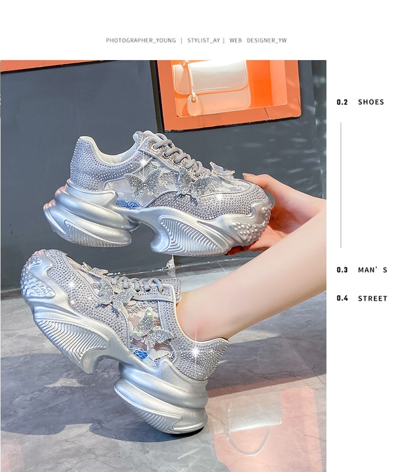 Women’s Thick soled Sneakers Shining Butterfly Designer Casual Shoes Luxury Lace up Running Shoes Tennis Outdoor Sports Shoes