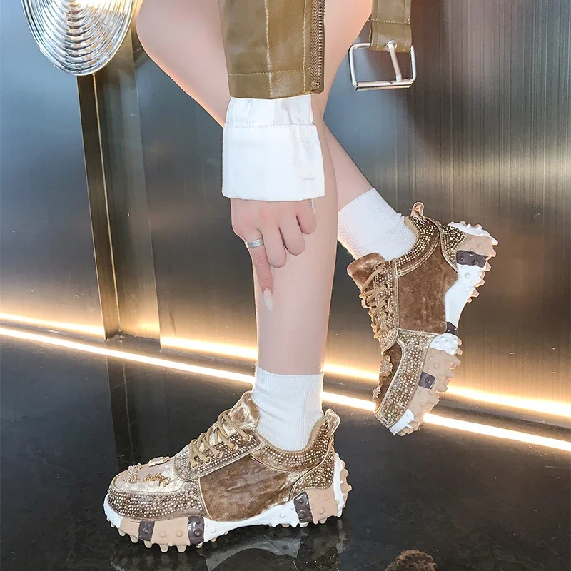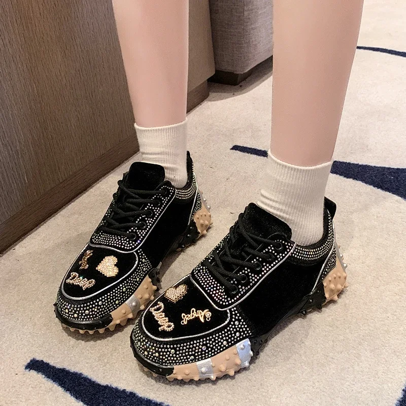 Women's Water Diamond Women's Sports Shoes Diamond Breathable Luxury Designer Casual Thick soled Vulcanized Shoes Zapatos Mujer