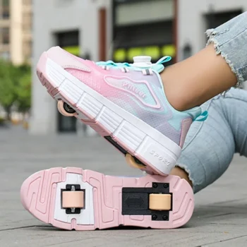 Kids Roller Skate Shoes Fashion Running Children Parkour Boys Girls Detachable 4 Wheels Deformation Outdoor Casual Skating ShoesRp 592.5040 TERJUAL (PO - Direct Import)