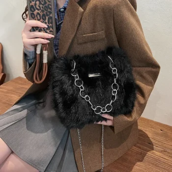 Korean Beige White Ladies Handbags 2024 Autumn Winte Soft Plush Chain Shoulder Bag Crossbody For Women Daily Shopping Handbags