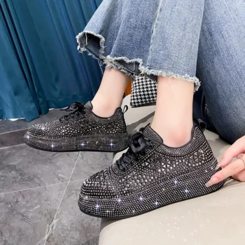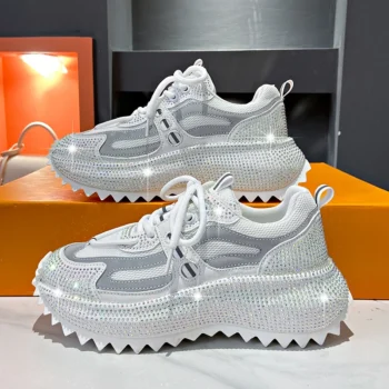 2025 Women’s Luxury Shoes Vulcanized Sports Shoes Shining Water Diamond Thick Bottom Lace Comfortable Designer Casual Shoes
