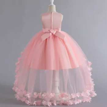 A88 Children Mesh Gown Girls Sleeveless Dress Pink Wedding Evening Party Princess Dresses For Kids Girl